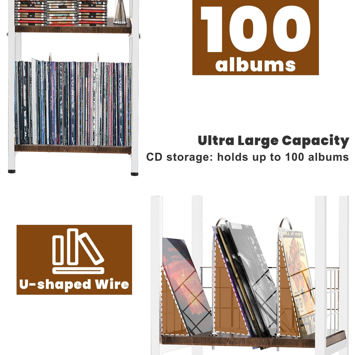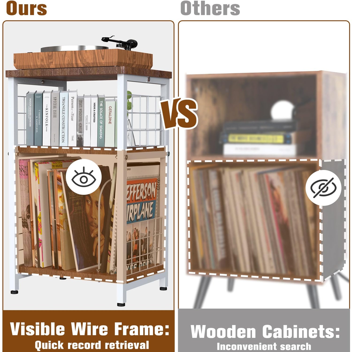 - Aesthetic Appearance & Practical: This small player table is a visual masterpiece that blends into any interior setting. With its vintage design and modern accents, it enhances the aesthetic appeal of your room, while complementing modern décor trends seamlessly. The third layer Iron wire frame and U-shaped wire can protect your vinyl records from falling or slipping. The designated compartments or shelves allow for convenient categorization based on genres, artists, or release years. This feature ensures easy access to your records and enables you to maintain an orderly collection.