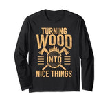 Turning Wood Into Nice Things Retro Woodworking Woodworker Long Sleeve T-Shirt