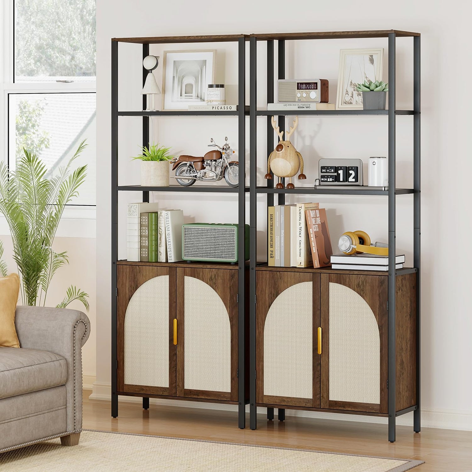 - 【Suitable for Multiple Scenarios】This bookshelf with doors features an inviting boho-style design that seamlessly complements any decor. Place it in your bedroom, living room, home office, kitchen, or entryway to showcase your treasured items, keeping your space tidy and organized while adding exceptional style.