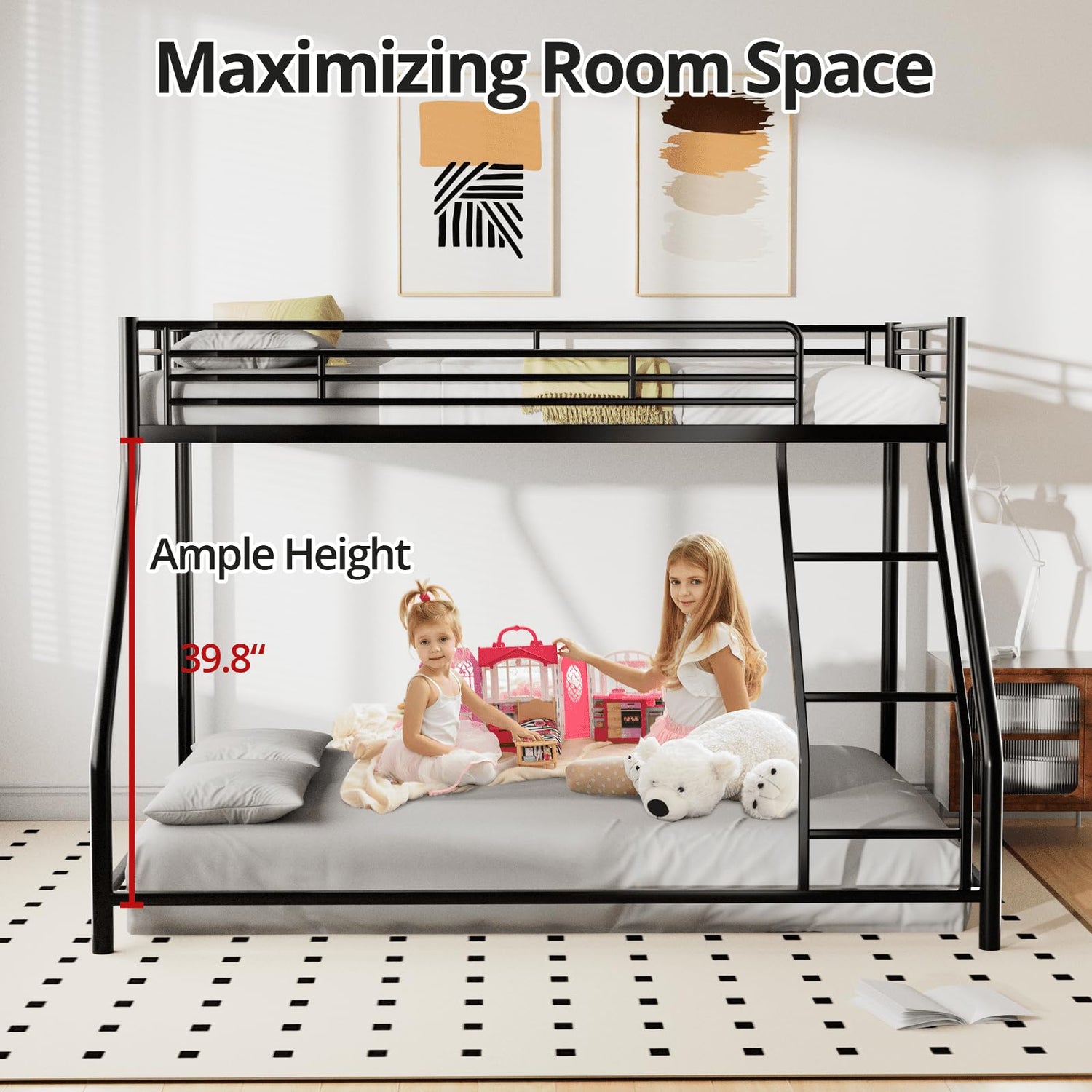 - 【Space-Saving Low Bunk Bed Design】Our Twin/Full XL over Queen bunk bed is designed with a low floor profile, 37.8 inches of space under the bed.making it perfect for maximizing room space. Whether you have multiple children or need extra sleeping space in a dorm, this metal bunk bed is the ideal solution.