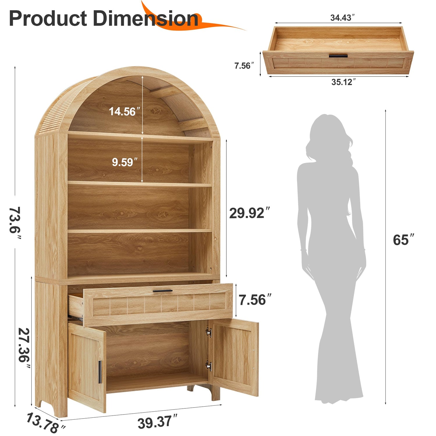 - Safety Features: Designed for stability, this tall arched bookcase with doors comes with a wall-anchoring kit to prevent tipping, making it safe for homes with kids or pets. plus metal hinges for smooth cabinet dooroperation