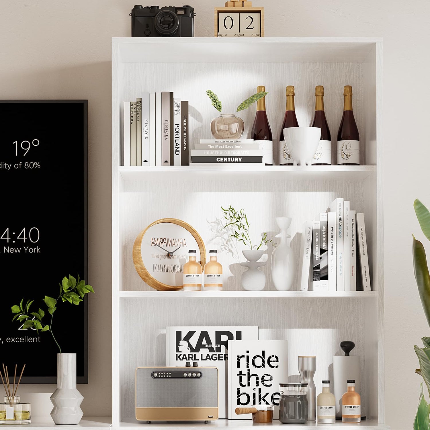 - [MWWT ALL YOUR STORAGE NEEDS]: Tusy white entertainment center with bookshelves can be used as a display cabinet, sideboard, food pantry cabinet, or TV cabinet. Suitable for you to place in any room