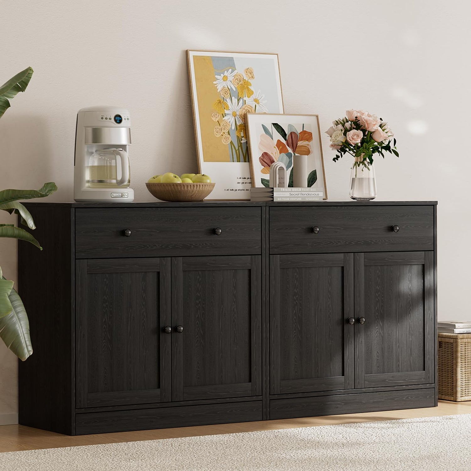 - 【EASY ASSEMBLY】:Choose separate cabinets to combine into your TV stand, you only need to install 4 small cabinets separately. Detailed assembly instructions are provided along with all necessary tools and hardware, assembling this bookcase with storage cabinets is a snap. Each component is labeled for straightforward assembly.