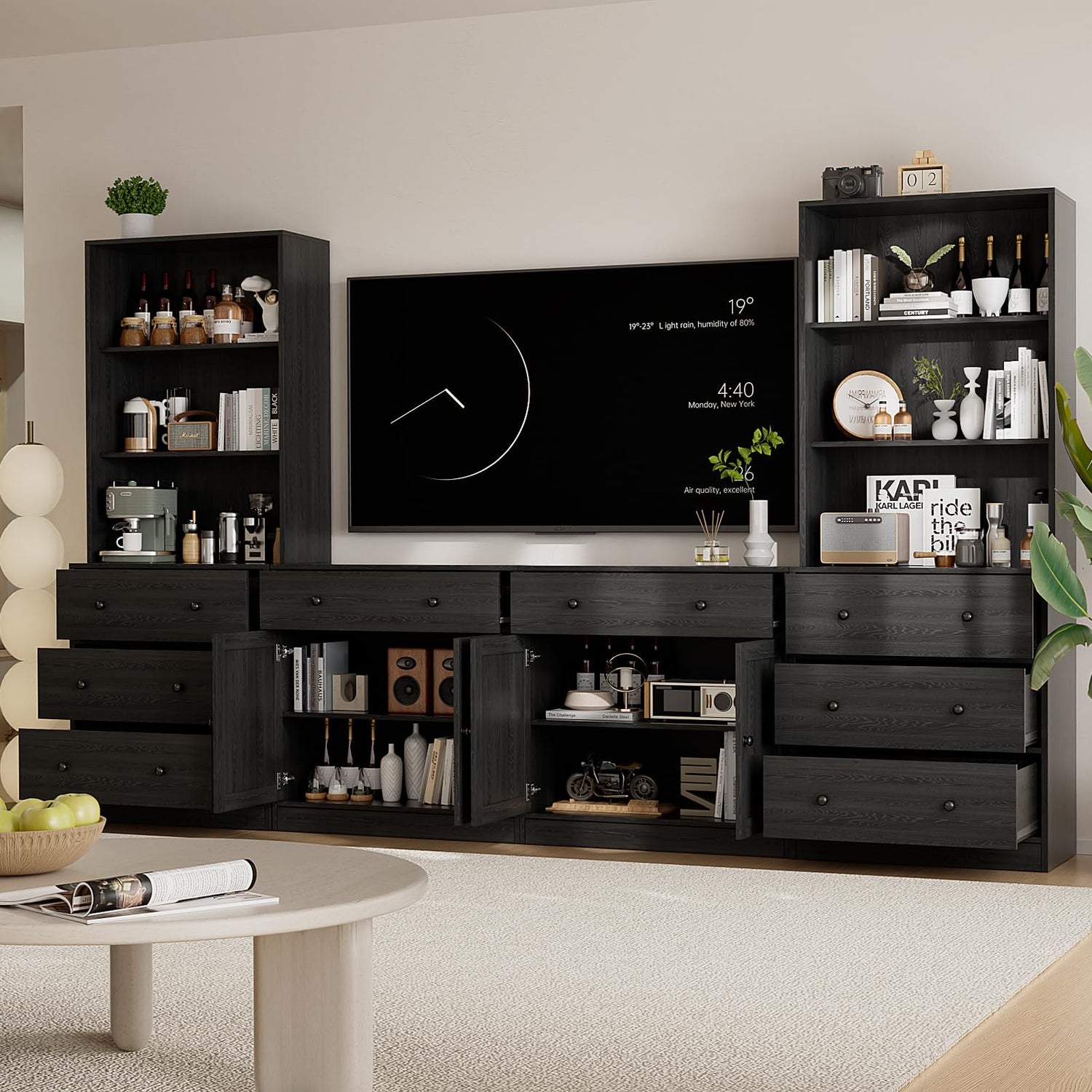 - 【DIY Your Cabinets】:Our TV cabinet consists of 4 individual cabinets, they contain 2 x 71" tall cabinets, and 2 x 31.5" short cabinets, you can choose different combinations to suit your style, or place them separately in other spaces where you need storage.