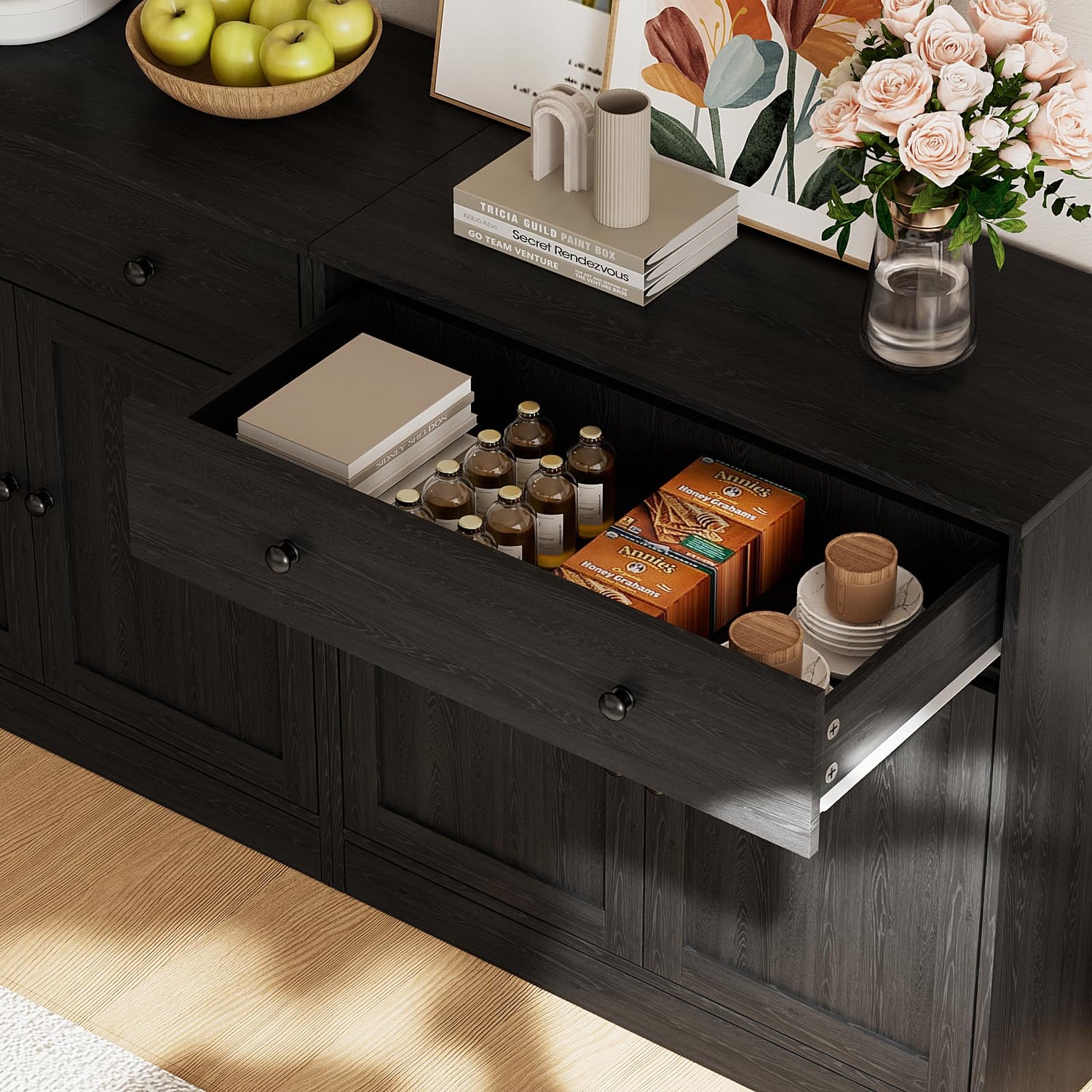 - 【Meet All Your Storage Needs】: Glass Cabinets, Bookcases, Dressers, Open Shelves, Can be used as a display cabinet, sideboard, food pantry cabinet, or TV cabinet. Suitable for you to place in any room.