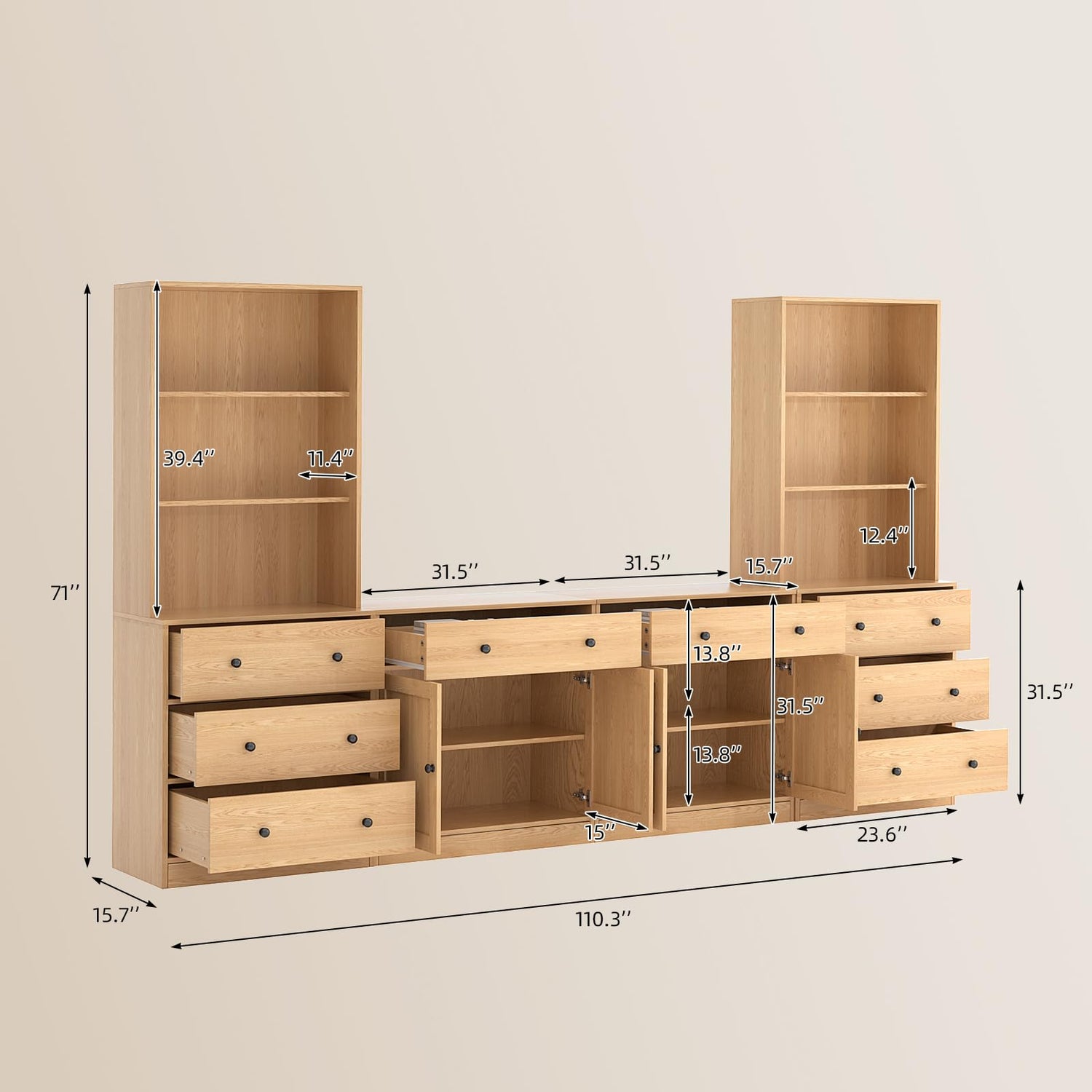 - 【Dimensions】: The TV console: 63”W x 15.7”D, overall dimensions of the entire unit: 110”W x 15.7”D x 71”H, NOTE: The entire unit will come in 4 boxes separately.