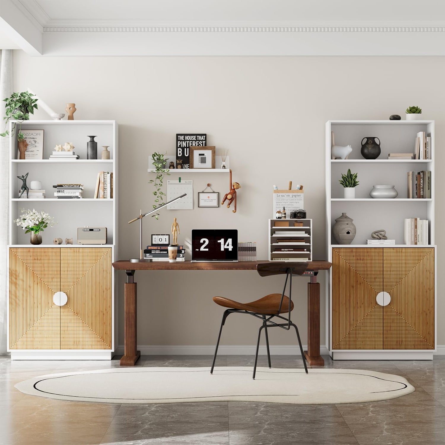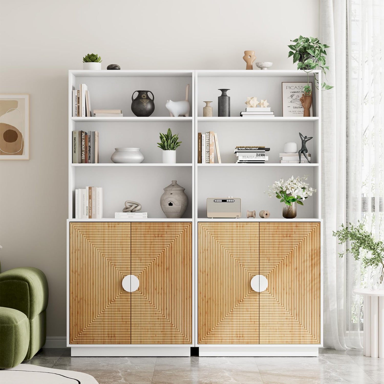 TUSY 4-Piece Large TV Stand with Bookshelves for TVs up to 75”, Wall Unit Entertainment Center with Doors, TV Cabinet for Living Room, Bedroom & Home Theater, White