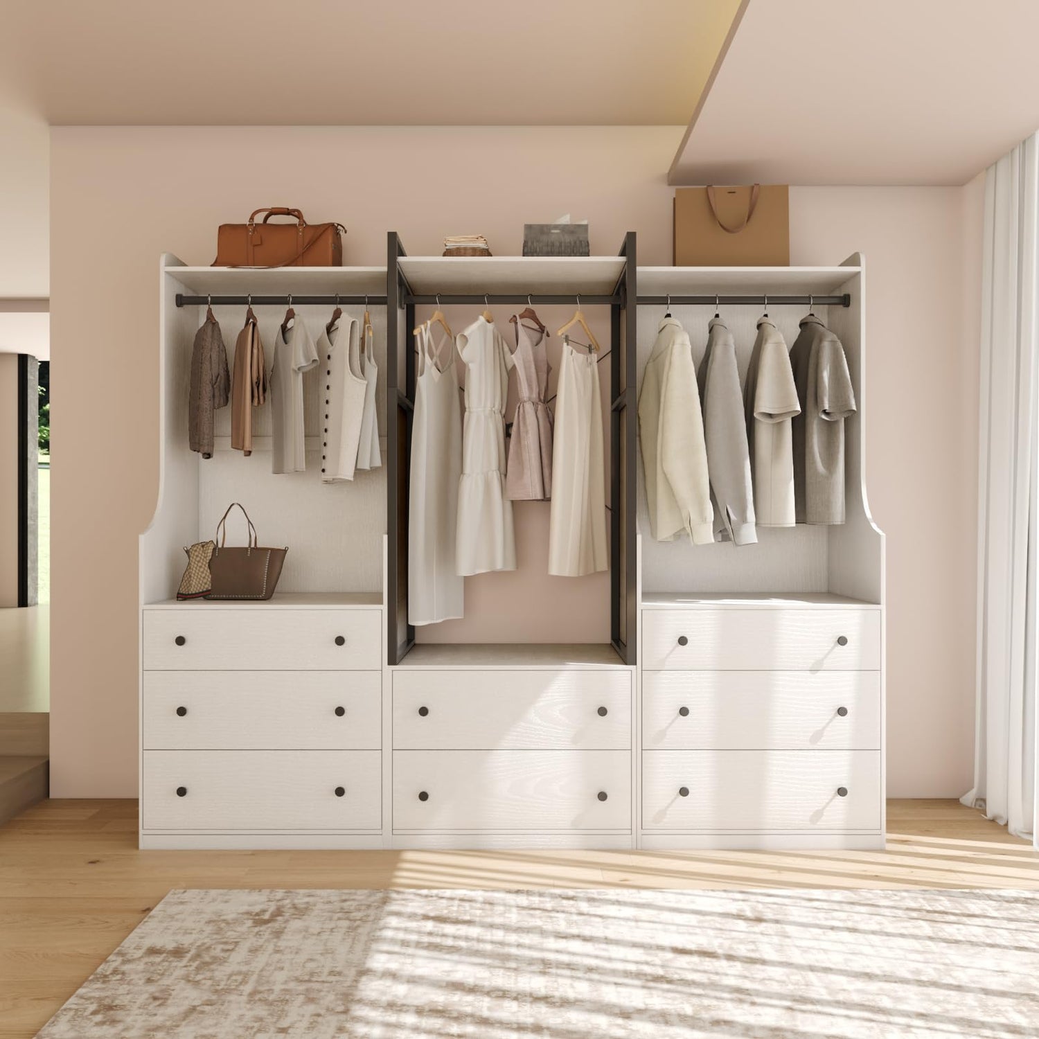 TUSY Larger Armoire Wardrobe Closet with 3 Hanging Rods & 8 Drawers, 81.9" Tall Modern White Bedroom Armoire System, Walk-in Closet Systems Organizer, 81.9”H x 19.7”D x 94.5”W, CAC