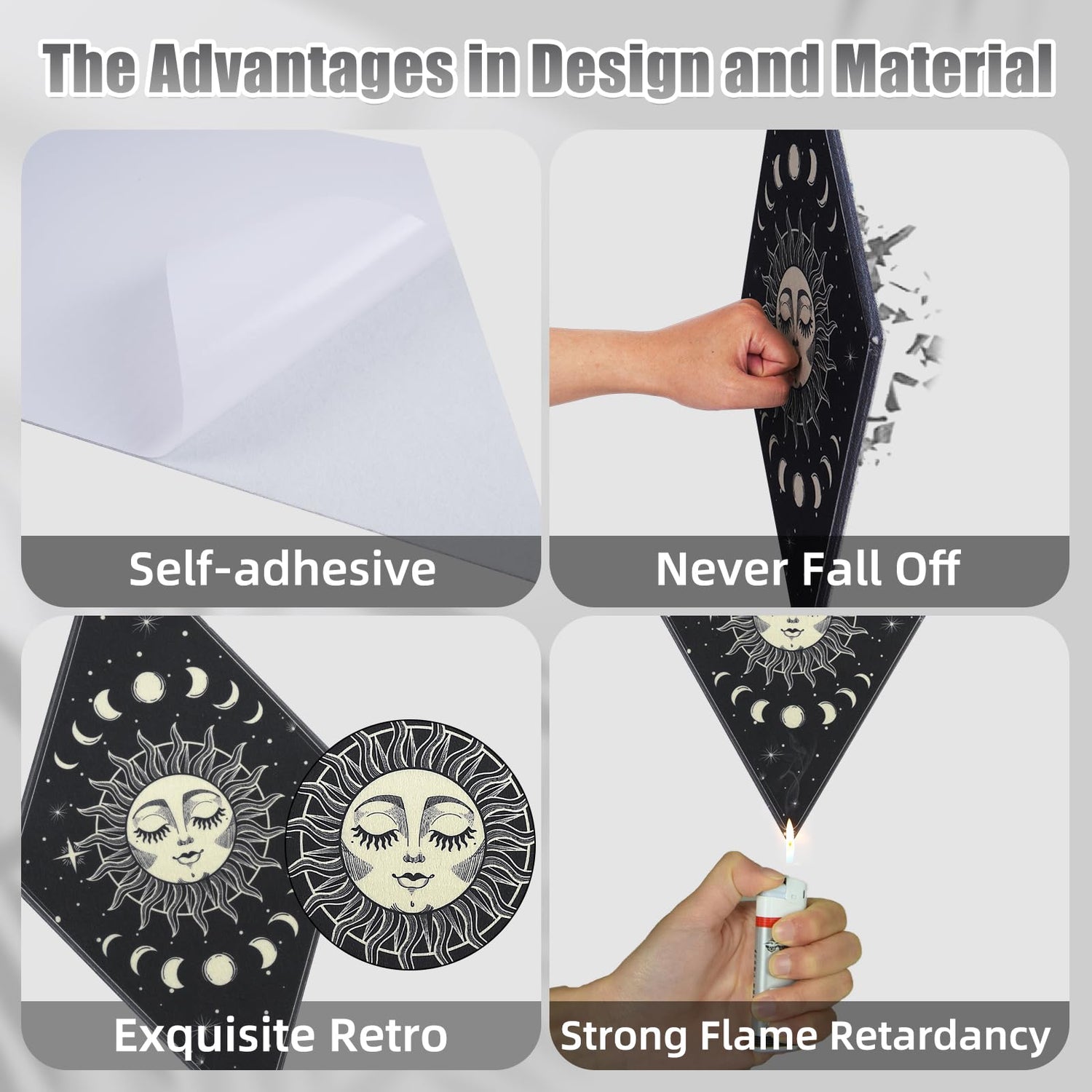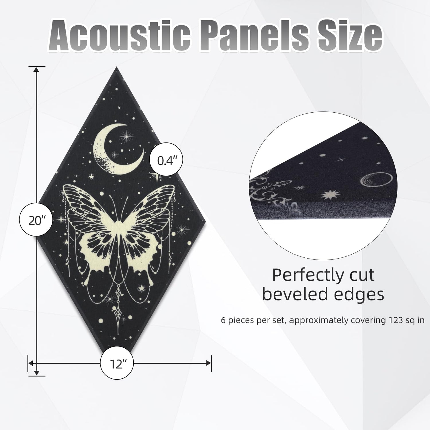 - UPGRADED ACOUSTIC PANELS: what you will receive are 6 pieces of moon art wall panels, designed in 6 different patterns in the theme of sun and moon, mainly colored in black and shaped in rhombus; Be different from other acoustic panels, We have upgraded their acoustic performance and their appearance. The acoustic panels absorb unnecessary sound and play a good role in decorating the wall.