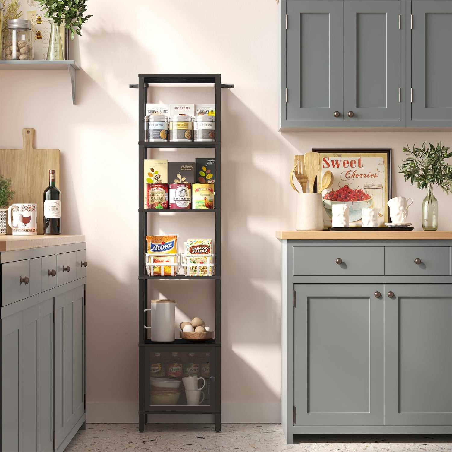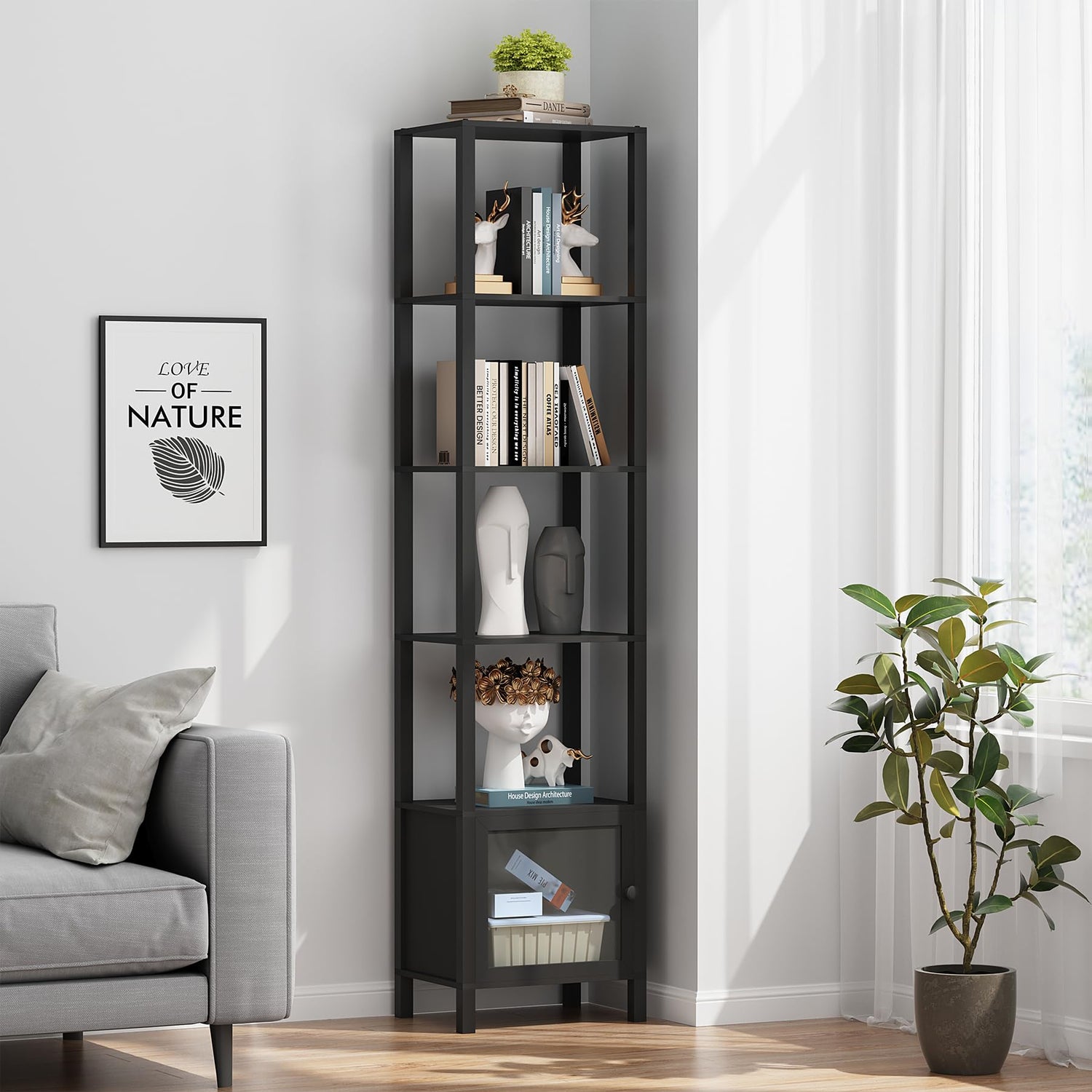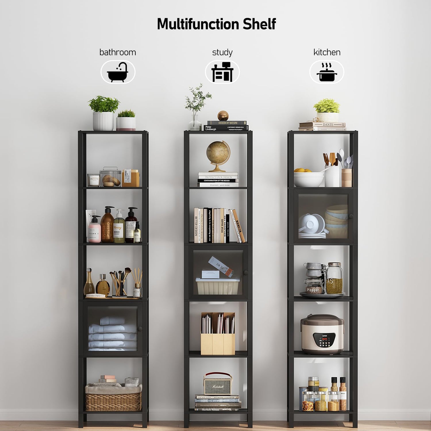 TUTOTAK 6 Tier Bookcase and Bookshelf, Narrow Book Shelf with Door for Small Space, for Living Room, Office, Study, Entryway, Black BS03BK006
