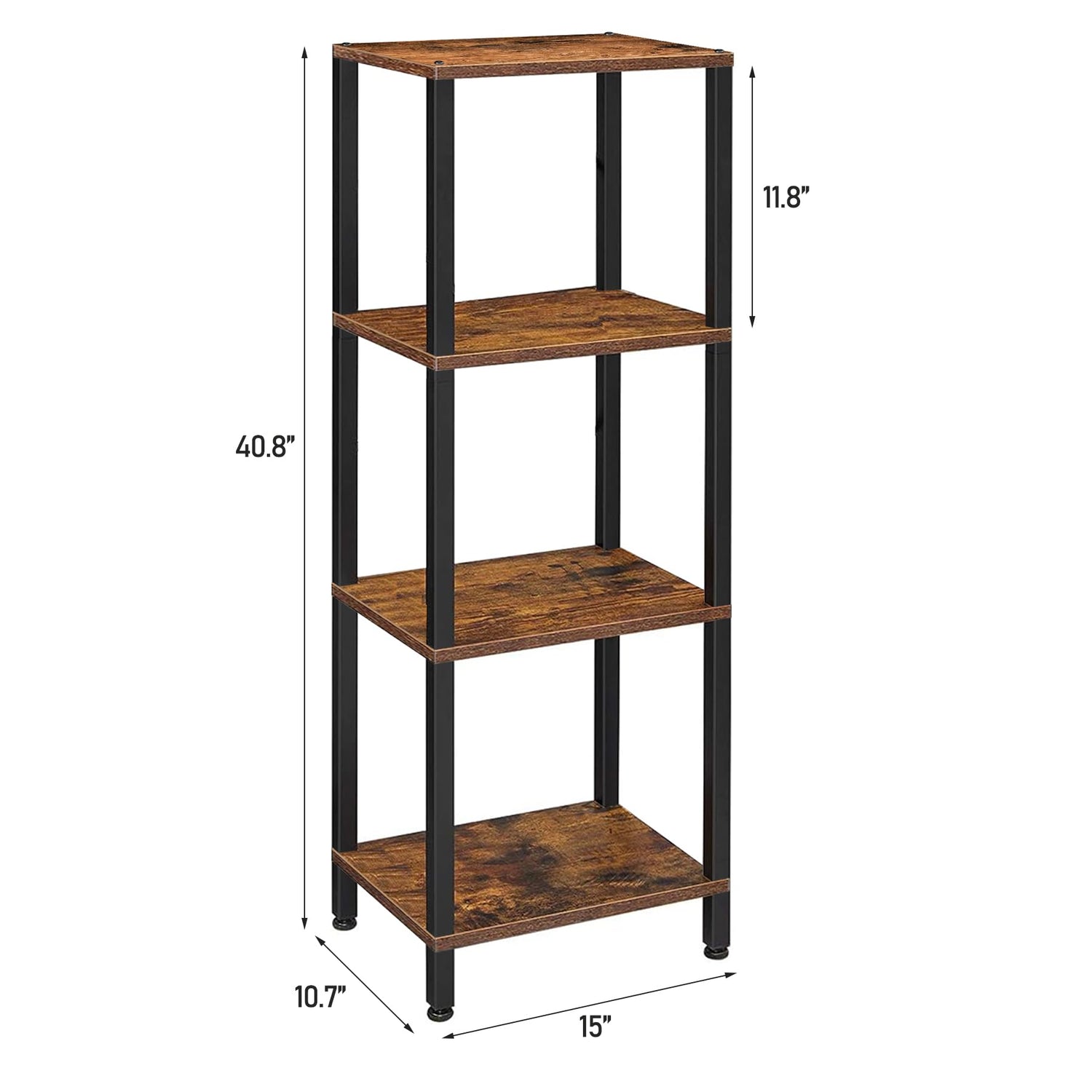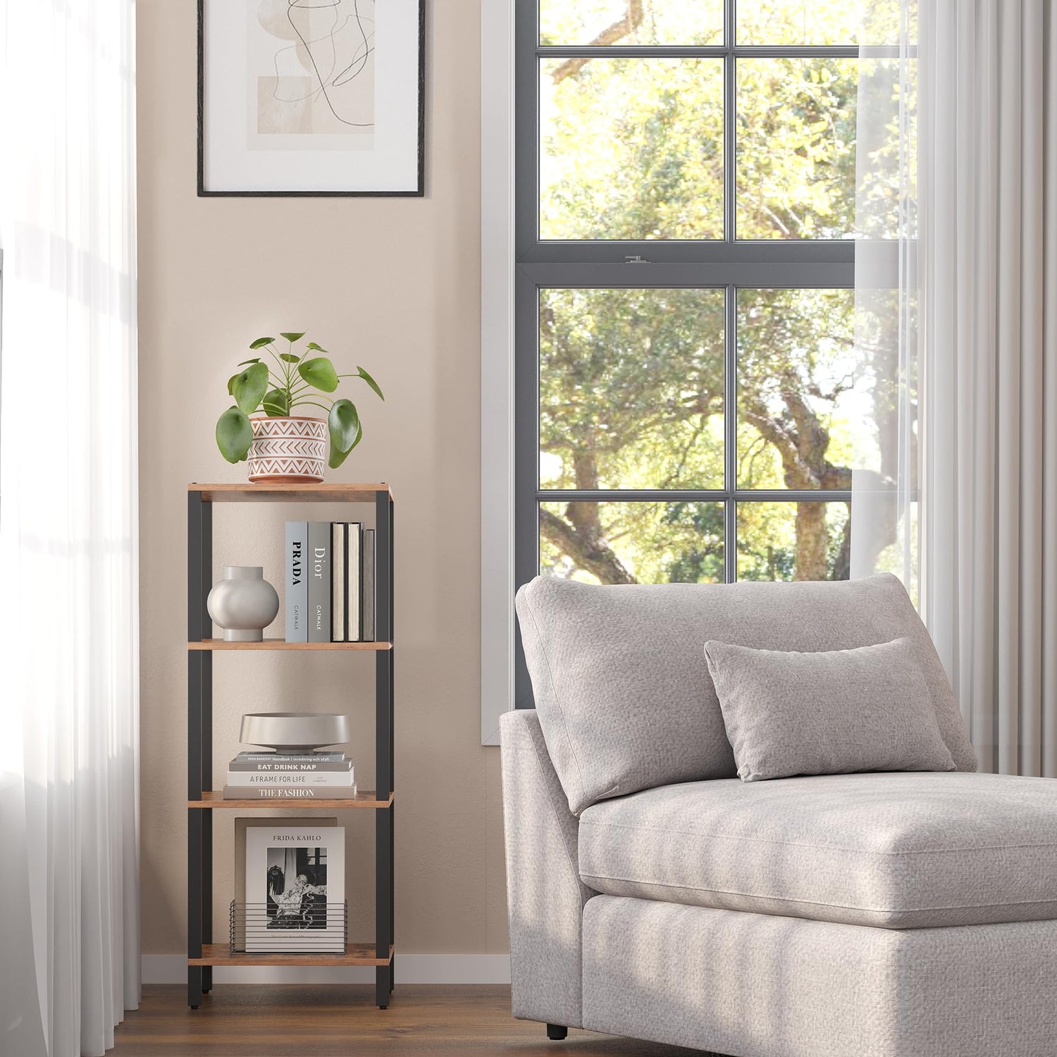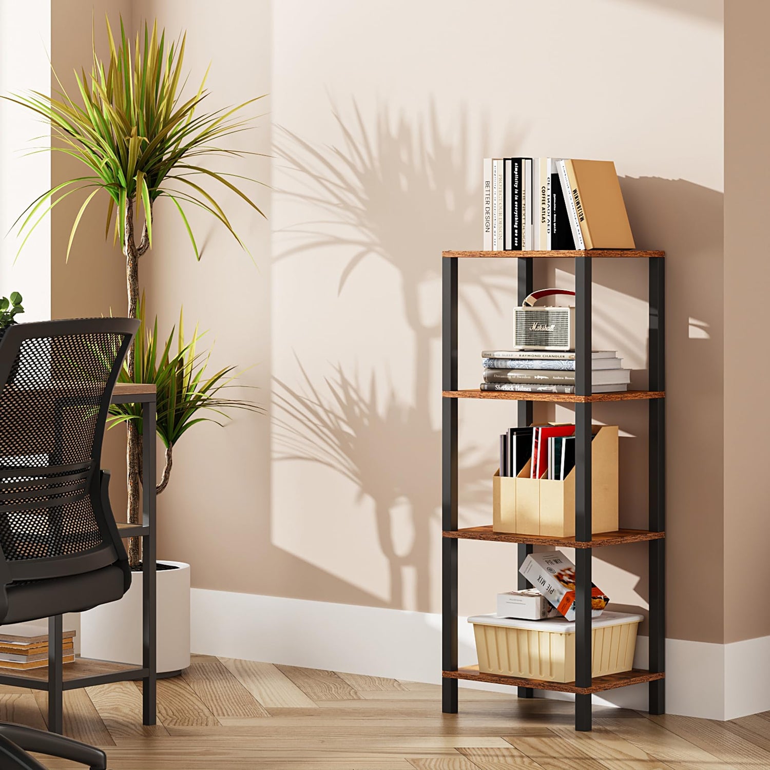 TUTOTAK 4-Tier Narrow Bookshelf for Small Spaces in Rustic Brown