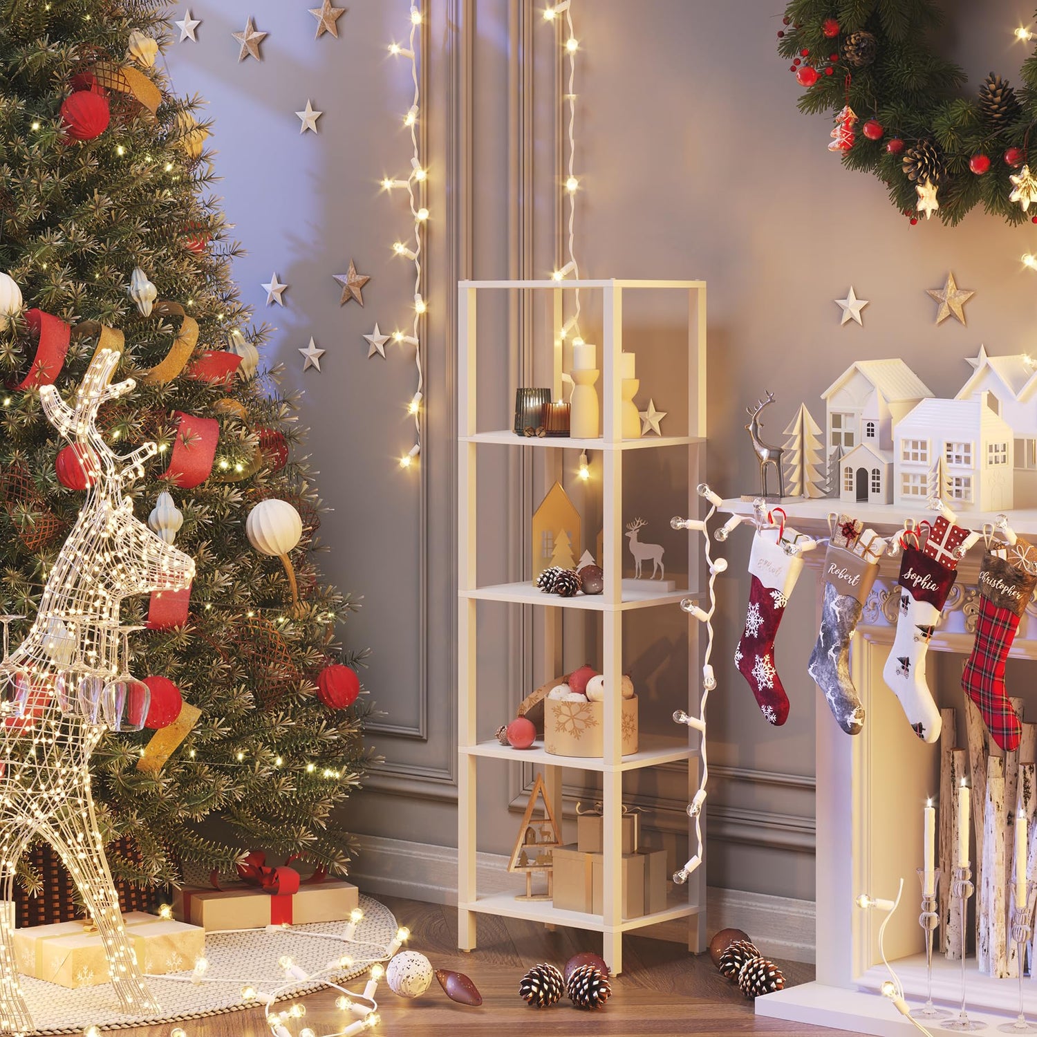 TUTOTAK Bookshelf, 5-Tier Tall Book Shelf, Narrow Bookcase for Small Space, DIY Stackable Bookshelf, for Living Room, Office, Study, Entryway, Industrial, White BS01BW005
