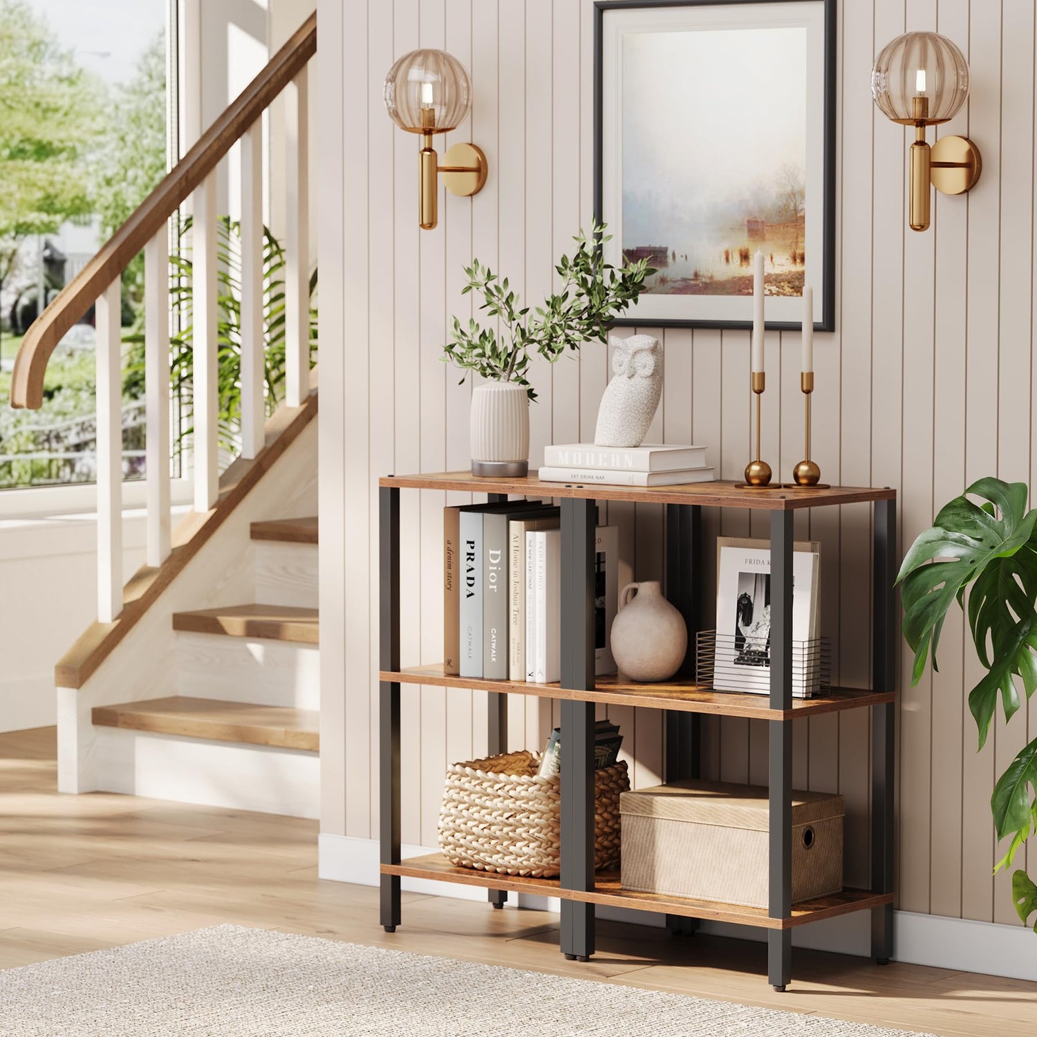 TUTOTAK Bookshelf, 6-Tier Tall Book Shelf, Narrow Bookcase for Small Space, DIY Stackable Bookshelf, for Living Room, Office, Study, Entryway, Industrial, Rustic Brown BS01BB006