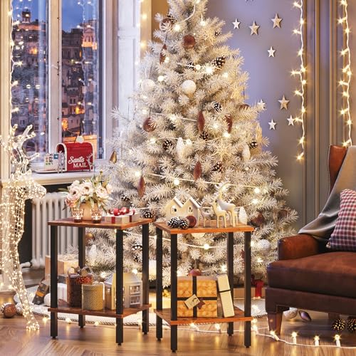TUTOTAK End Table with Charging Station, Side Table with USB Ports and Outlets, Nightstand, 2-Tier Storage Shelf, Sofa Table for Small Space, 1 Package(2PCS) TB01BB041