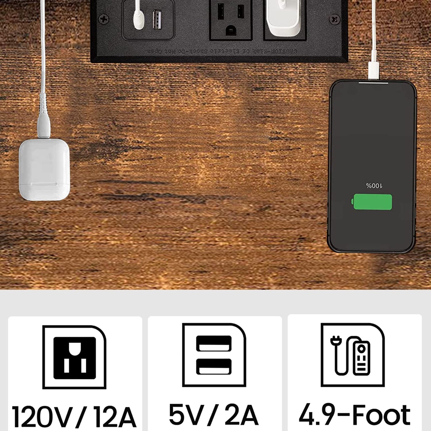 - [End Table with Charging Station] This side table with 2 AC outlets, 2 USB ports, and the 4.5 ft extension cord helps you charge your phone, tablet, lamp, and game console at the same time. Also, the distance between each outlet and port prevents adapters from blocking each other.