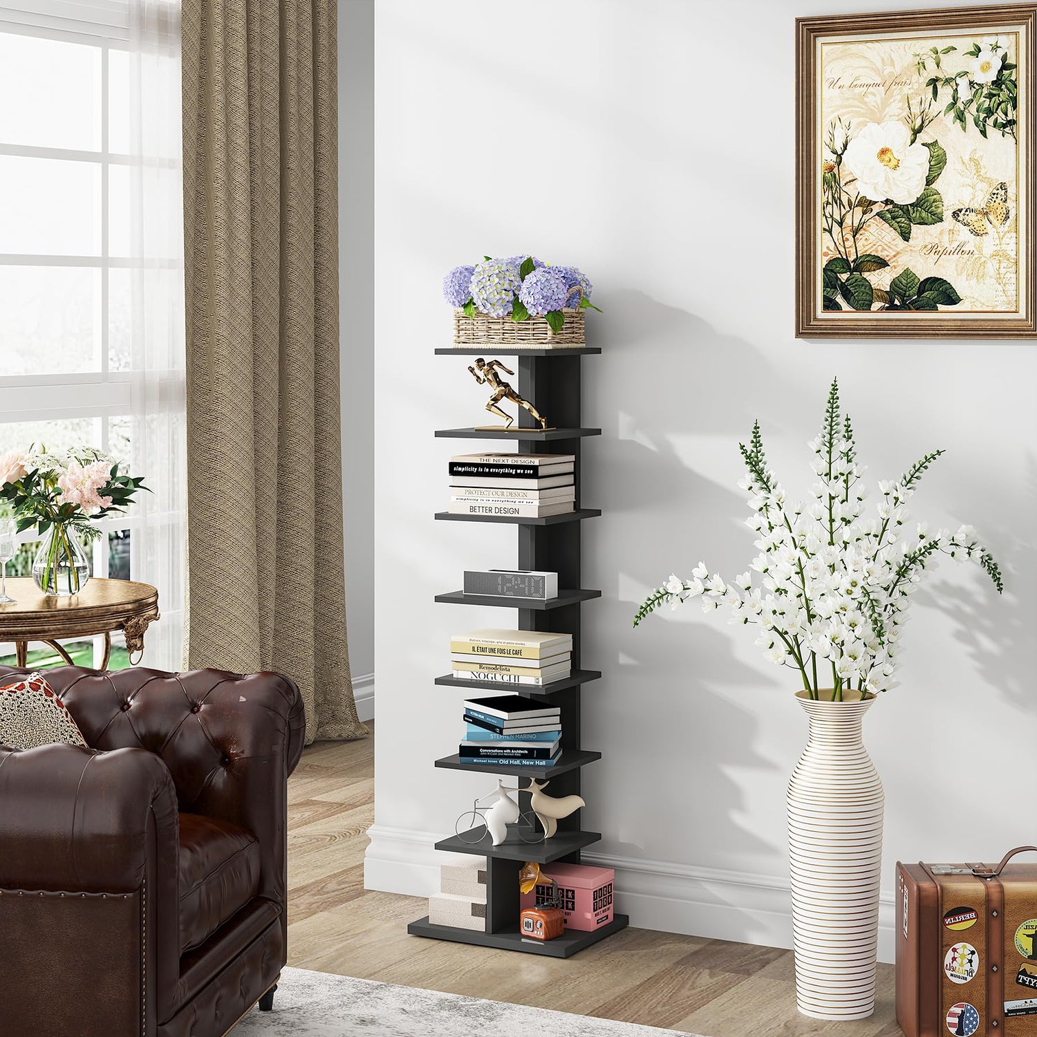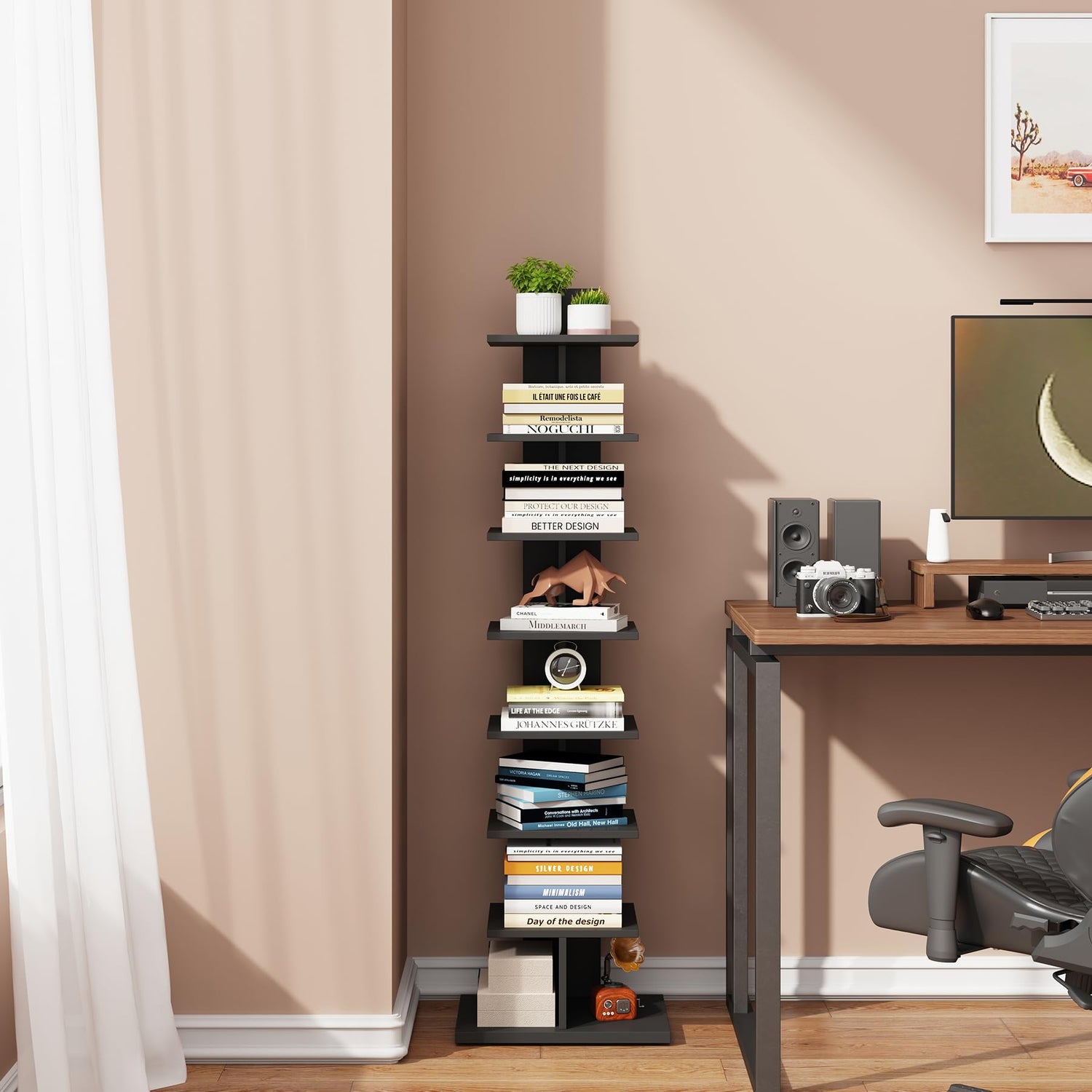 - [Save Space and Large Capacity] This spine book tower covers an area of less than 1 ft² and can be easily placed in any corner. The eight-layer bookshelf makes full use of vertical space and provides more storage areas for your books, decorations and other items.