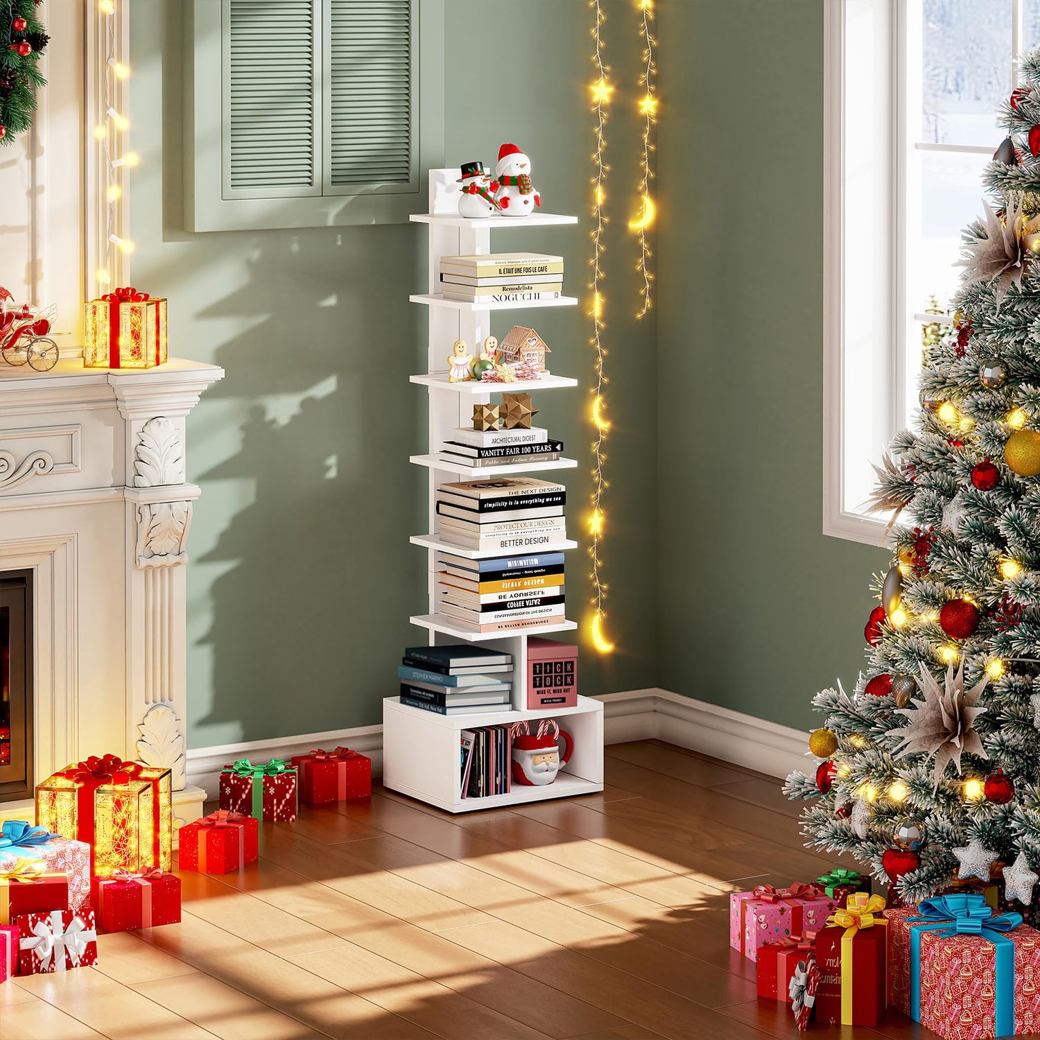 - [Save Space and Large Capacity] This spine book tower covers an area of less than 1 ft² and can be easily placed in any corner. The eight-layer bookshelf makes full use of vertical space and provides more storage areas for your books, decorations and other items.