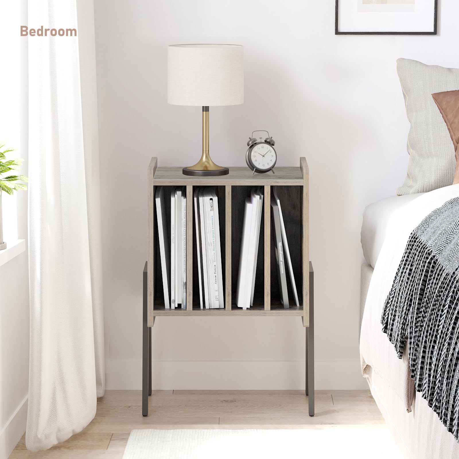 - [4 compartment storage] Our end table is solid and stable enough when being placed bottle, lamp, book and magazine. Space-saving and lightweight design, easy to move.