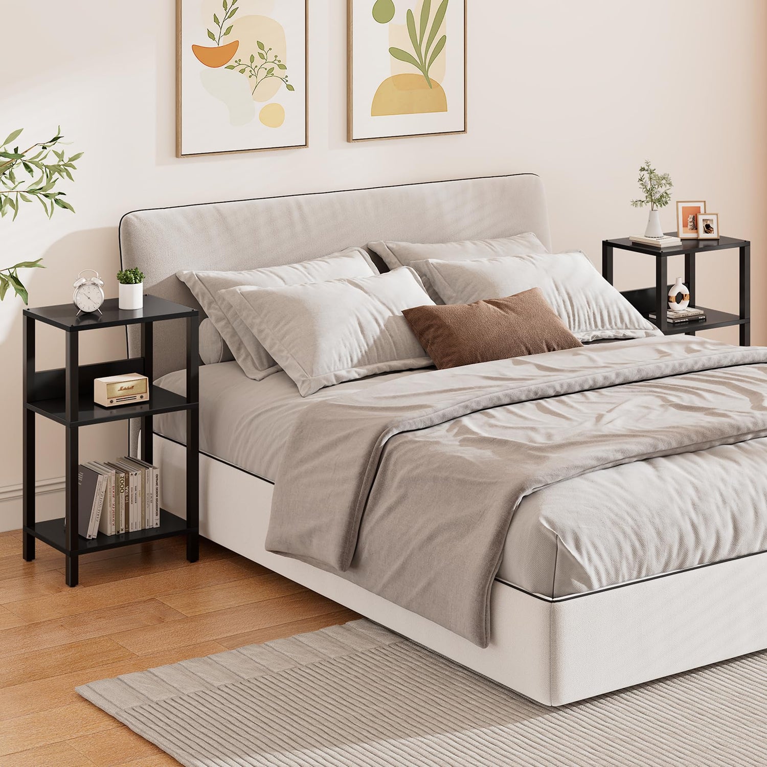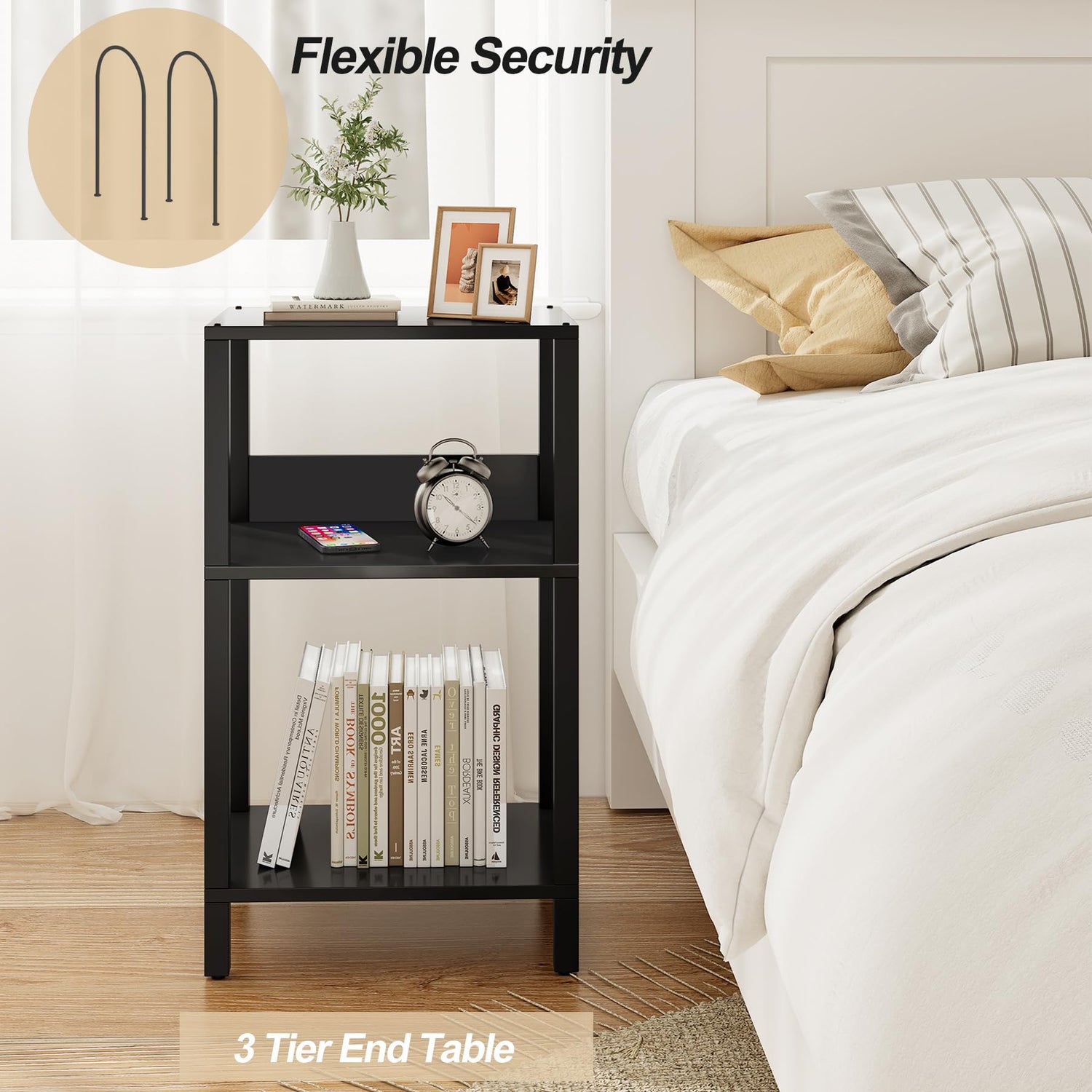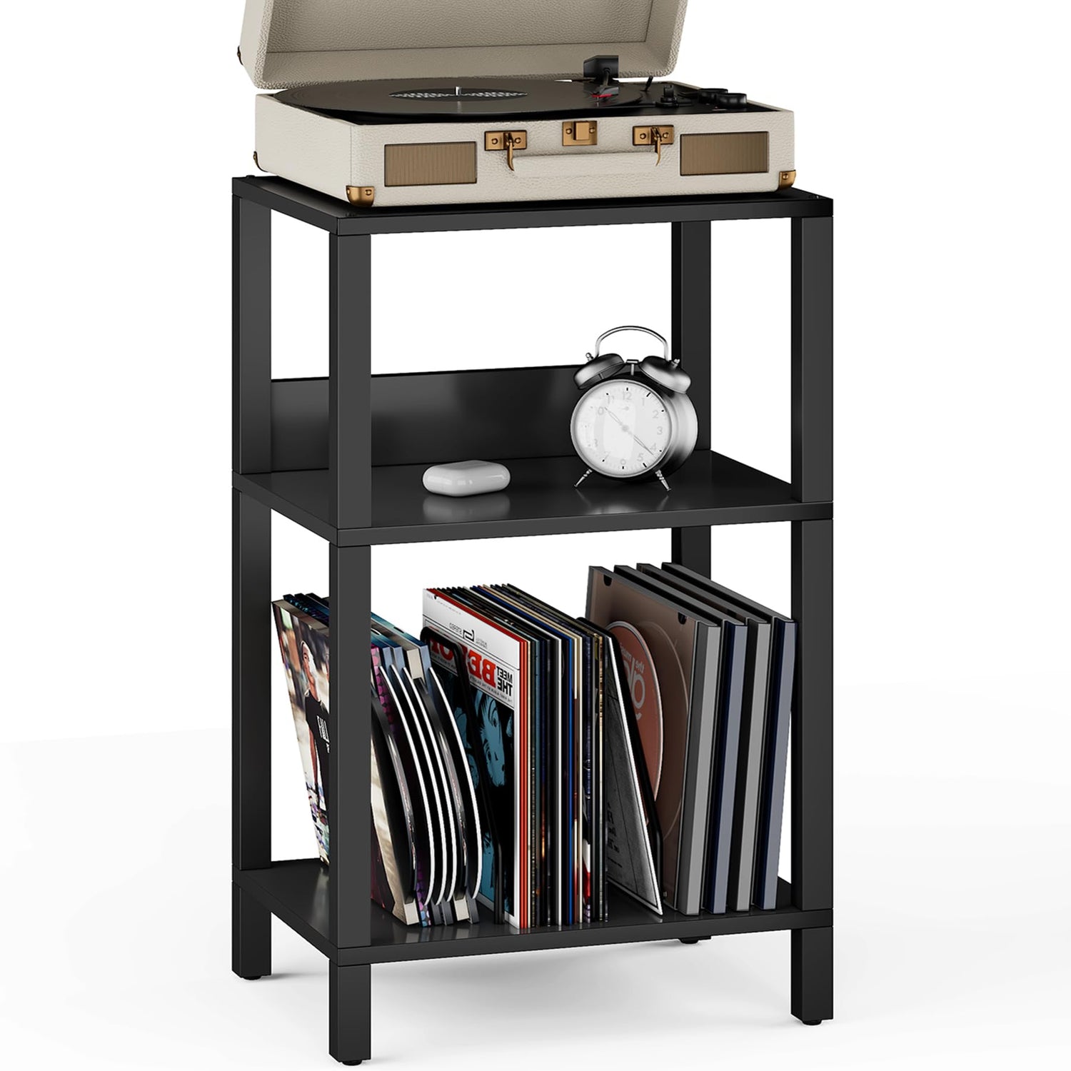 TUTOTAK Record Player Stand with Storage Up to 100 Albums,Record Storage Table,3 Tier End Table,Side Table for Living Room, Bedroom, Black TB01BK075