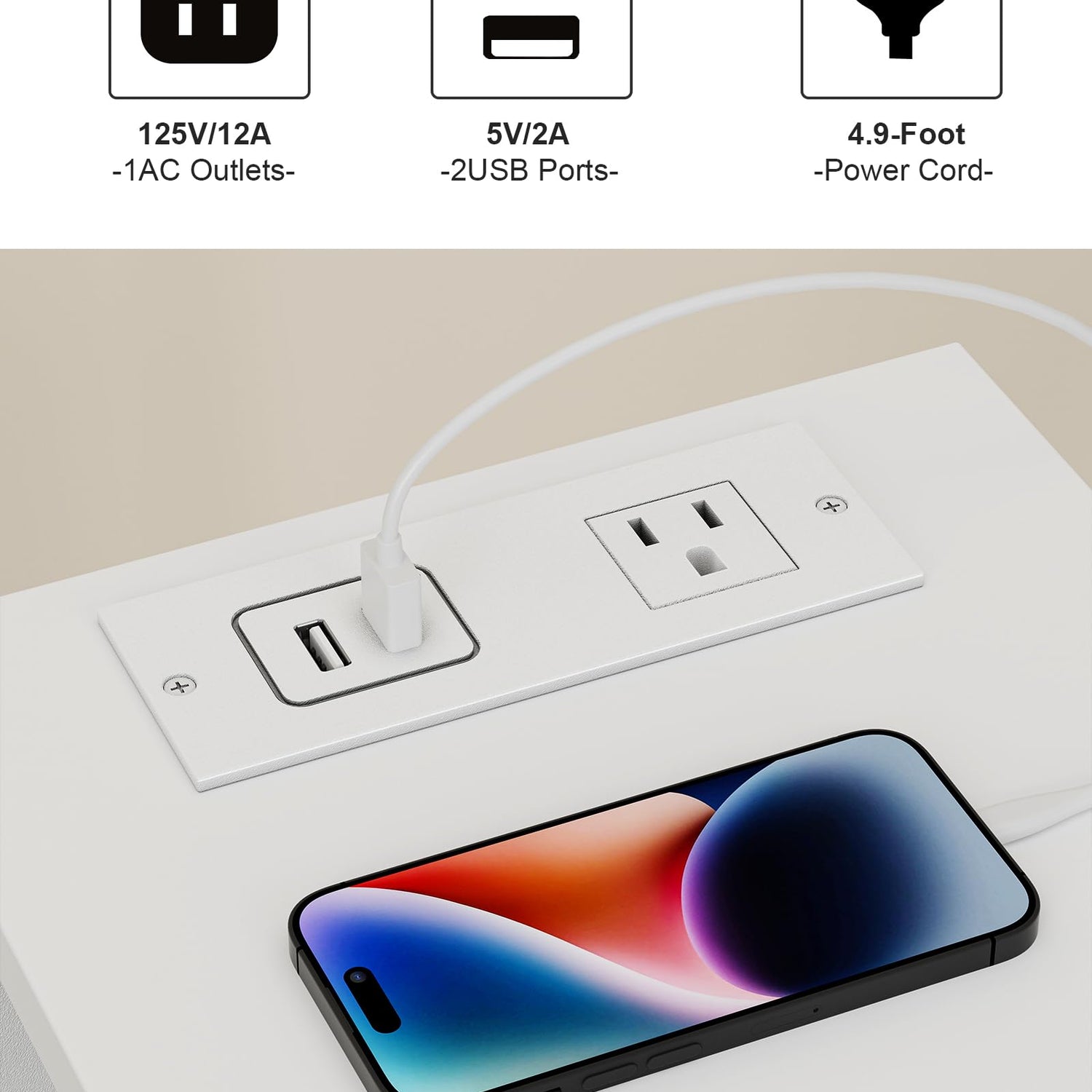 - [End Table with Charging Station] This side table with 1 AC outlets, 2 USB ports, and the 4.5 ft extension cord helps you charge your phone, tablet, lamp, and game console at the same time. Also, the distance between each outlet and port prevents adapters from blocking each other.
