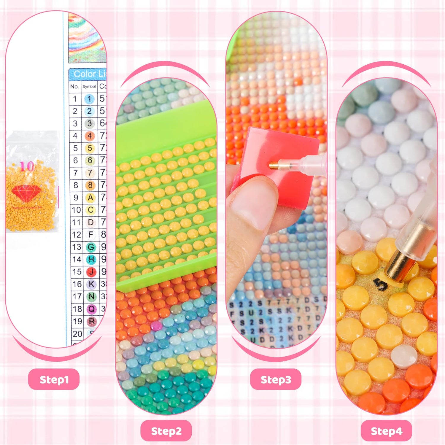 - [DIAMOND PAINTING KITS] Each kit contains all diamond painting accessories. Including 1×high definition painting canvas, enough color coded rhinestones, 1×point diamond pen, 1×craft tray, 1×clay. Don’t worry about the lack of diamonds, we add 30% to each color of diamonds