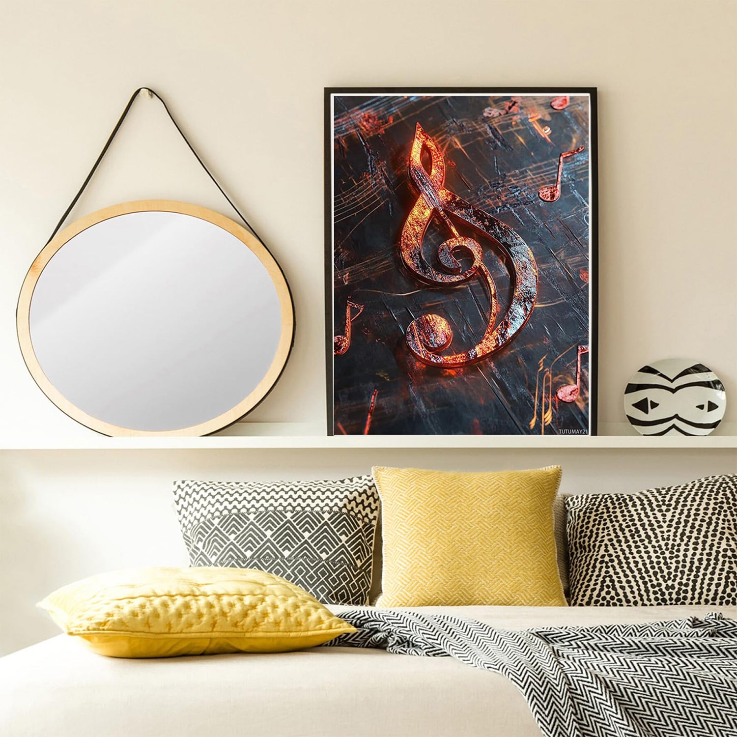 TUTUMAY21 Metallic Treble Clef Diamond Painting Kits, Music Full Round Drill Diamond Painting Kits 5D DIY Diamond Art Kits for Adults Women Home Decor 12x16 inch