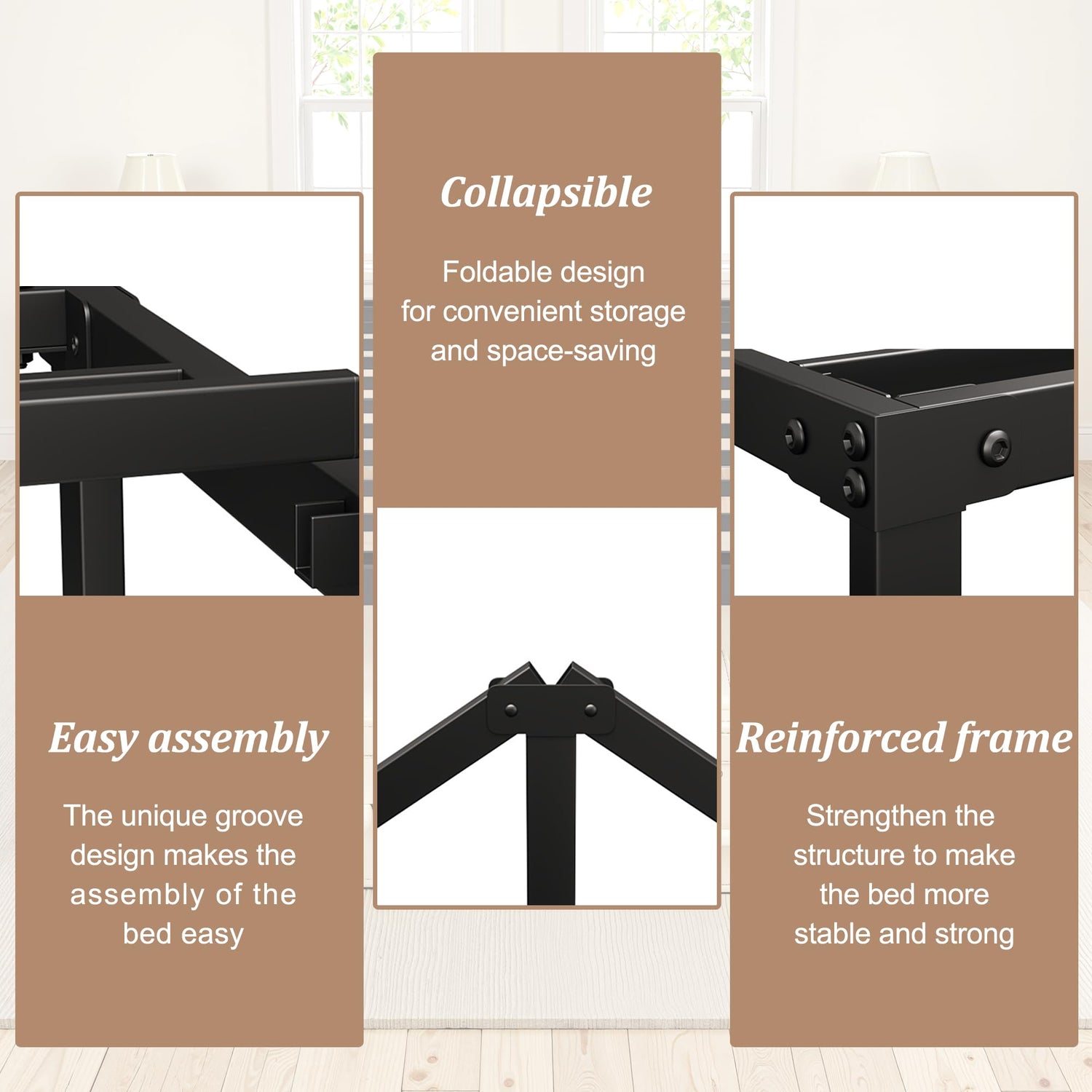 - Underbed Storage: Maximize your space with the 18-inch tall underbed storage provided by this single bed frame. The additional storage space underneath the twin size bed frames allows you to store boxes, bins, or other items, keeping your room neat and organized.