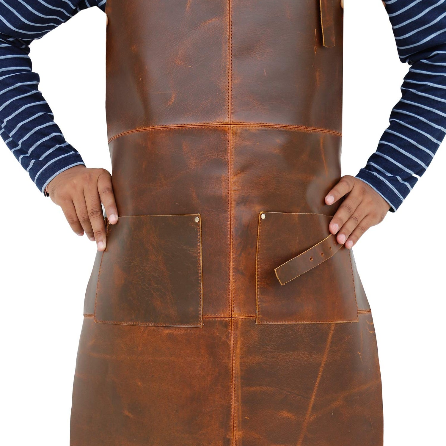 TUZECH Durable Leather Apron Utility Tool With Pocket For Chef||Butcher||Metalworker||Carpenter||Blacksmith||Heavy Duty Apron (Brown (Double Pocket), 30" Inches)
