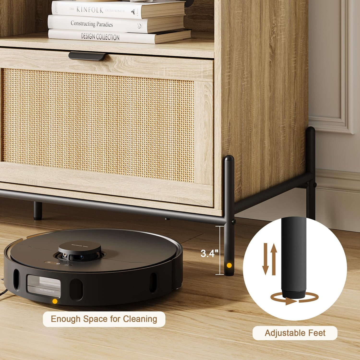 - 【Rattan Drawers for Airflow】Unlike traditional storage, the rattan drawers not only have a unique, natural look but also offer excellent ventilation to help prevent moisture.They’re perfect for storing books, stationery, or small clothing items, keeping your belongings in great condition.