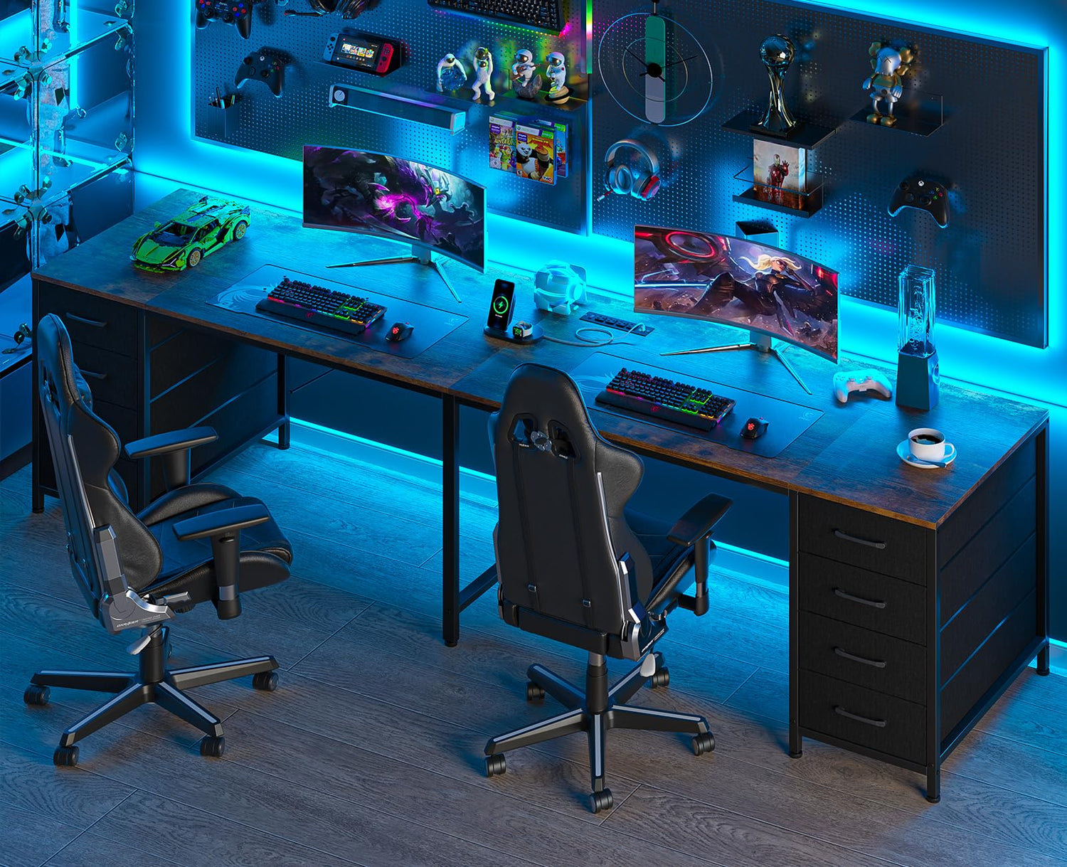 - 【LARGE LARGE & LARGE】This 2-person computer desk comes with a large 110.3-inch desktop to meet all the desktop needs of two people, and a large storage space with 8 drawers totaling 60 gallons of capacity to keep everything organized, while maintaining nearly 40 inches of large legroom to Keep both people comfortable