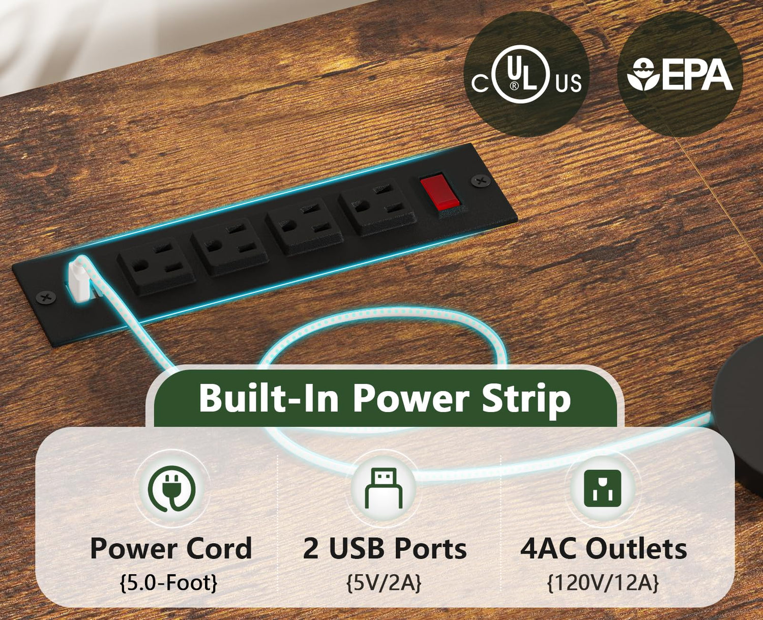 - 【POWER OUTLETS& USB】This writing computer desk comes with a charging station with 4 outlets 2 USB ports and Power Control Switches to easily charge your cell phones, computers, printers, gaming devices, and other office equipment. This will save you from messy cords and keep the desktop clean and tidy