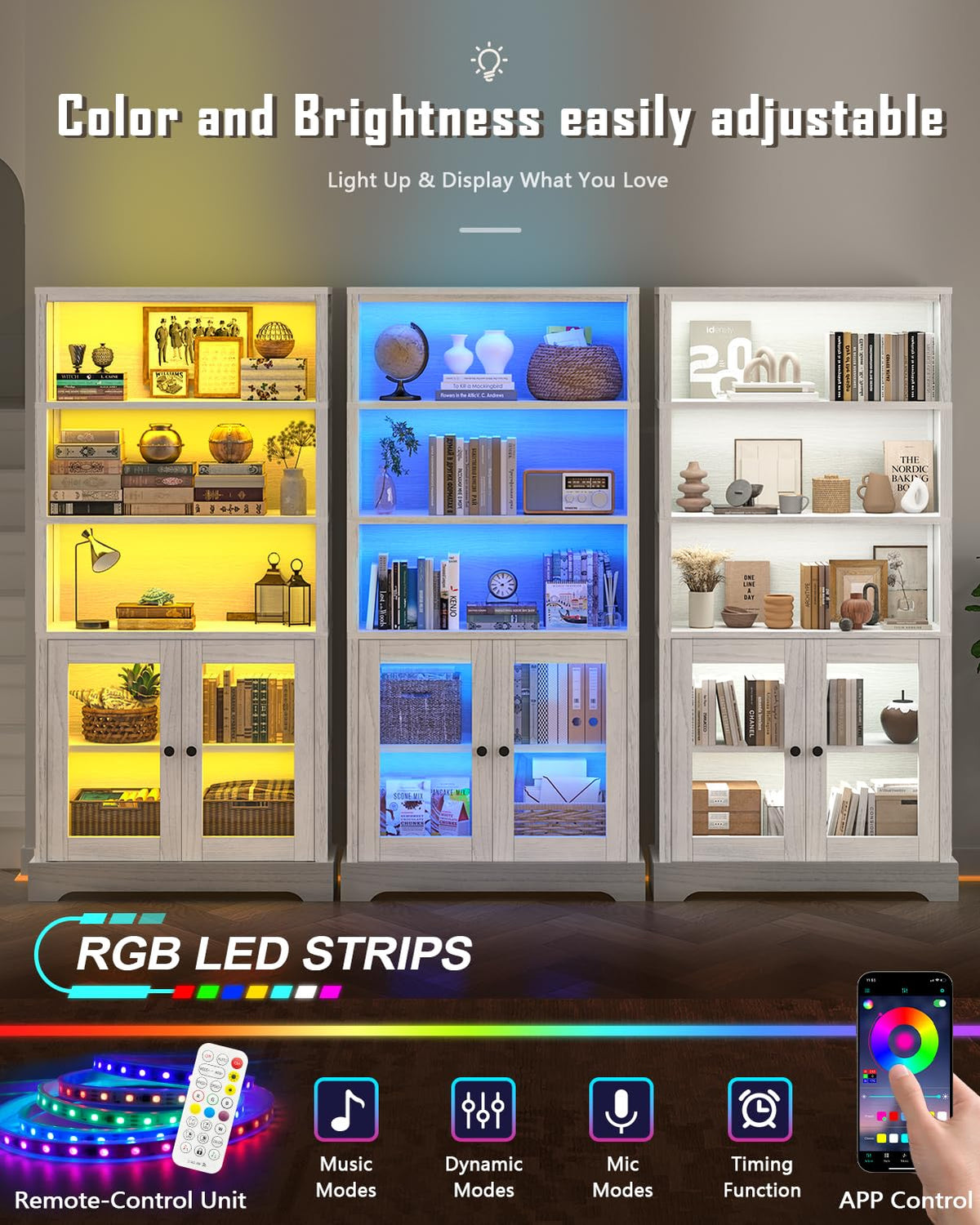 - 【Adjustable LED Lights】TVU display cabinet features LED light strips with 7 static colors, 99 dynamic modes and 10 levels of brightness. You can use the switch, remote control or app to adjust your favorite color, light up your decorations and create the ambiance of your living space