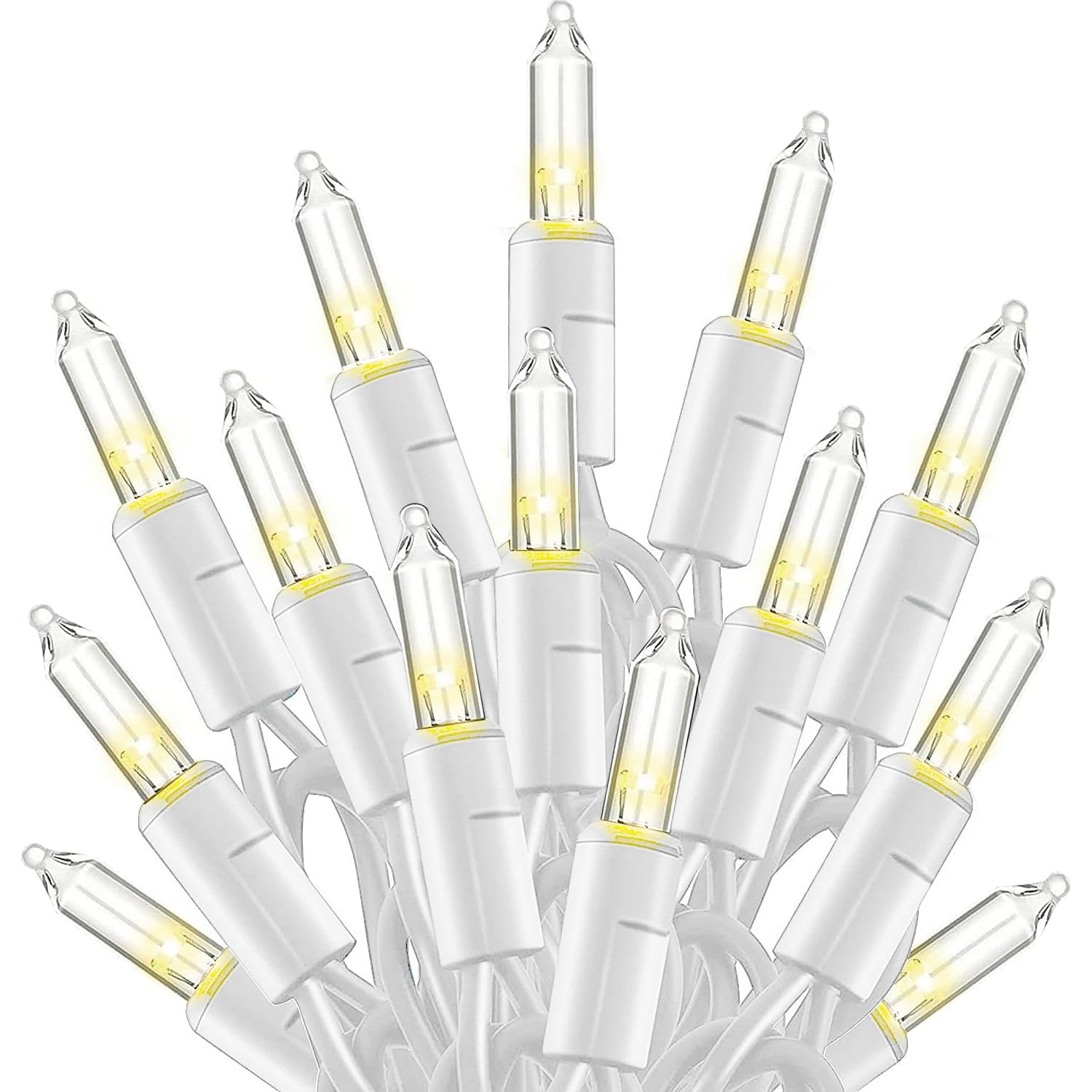 TW SHINE Warm White Christmas Lights, 20FT 100 Count Incandescent White Wire Christmas Tree Lights, Waterproof Xmas String Lights for Outdoor Indoor Home Party Decorations