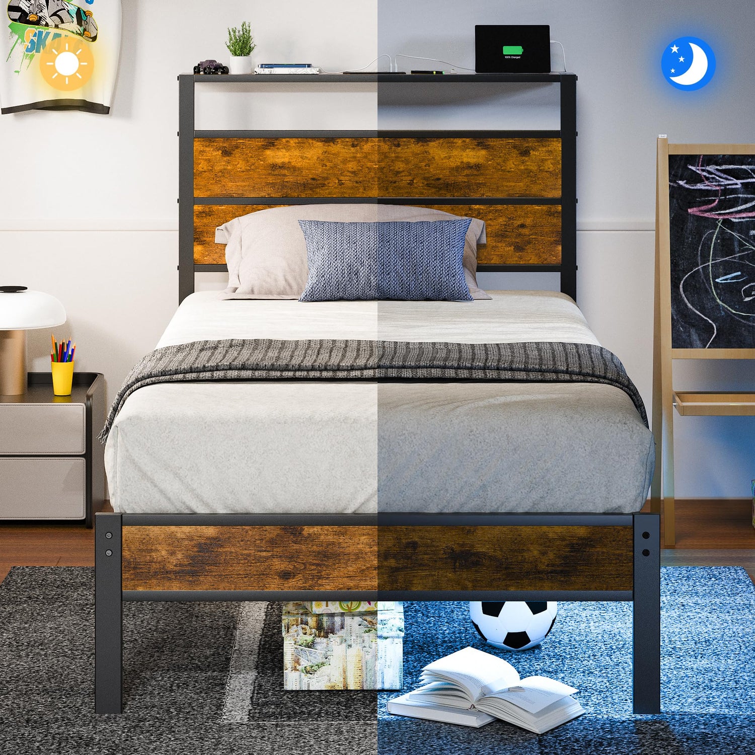 - Convenient Storage Headboard: Features built-in wooden shelves, perfect for storing books, gadgets, or decor, keeping your essentials within easy reach.