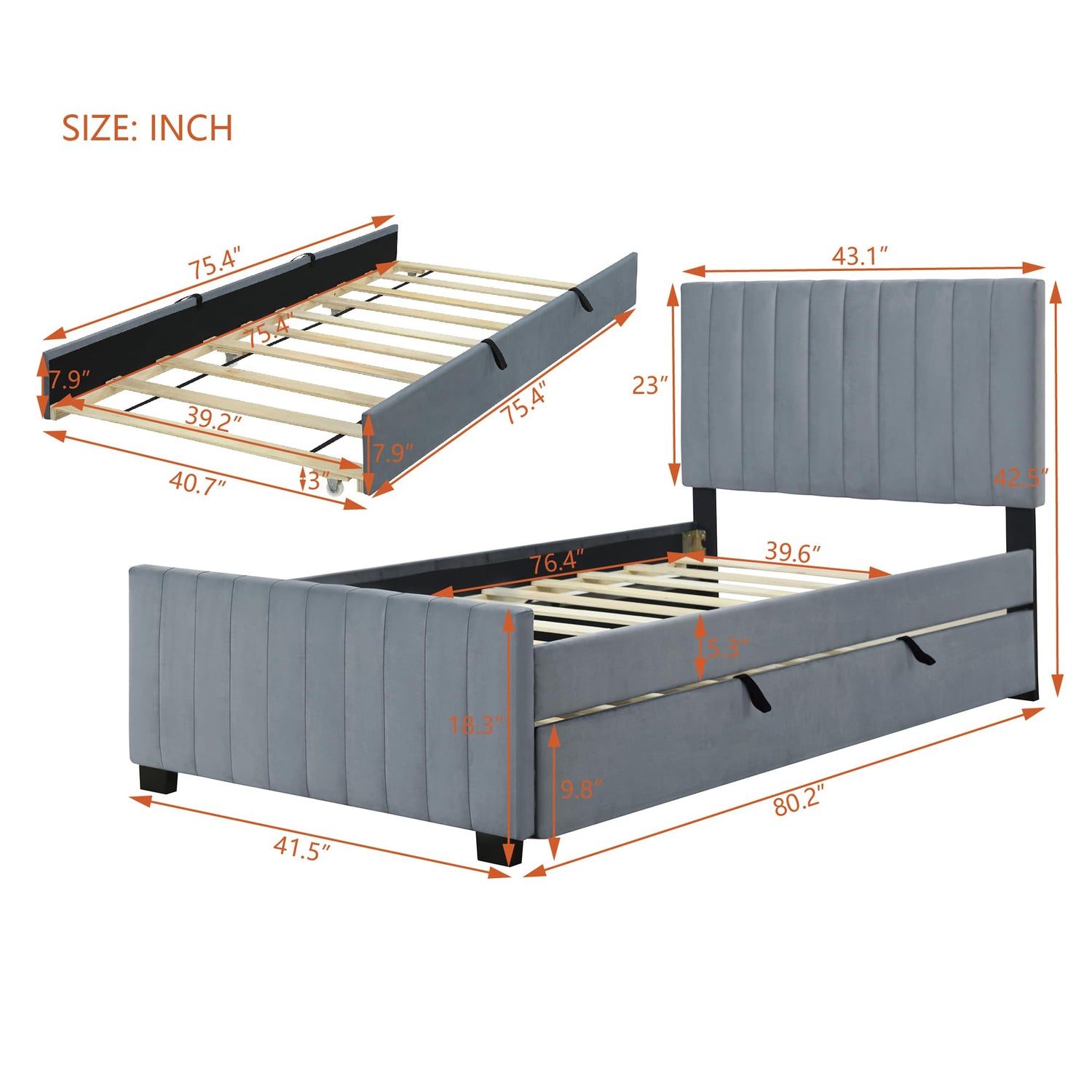 - đ„ăTwin Size Trundle Bed: ComfortableăVelvet fabric used in the production of this trundle bed twin size is high-grade the fabric is very comfortable and skin-friendly.It is filled with high-density foam,which is soft and comfortable.With 10 reinforced slats fo each bed,no spring box required.