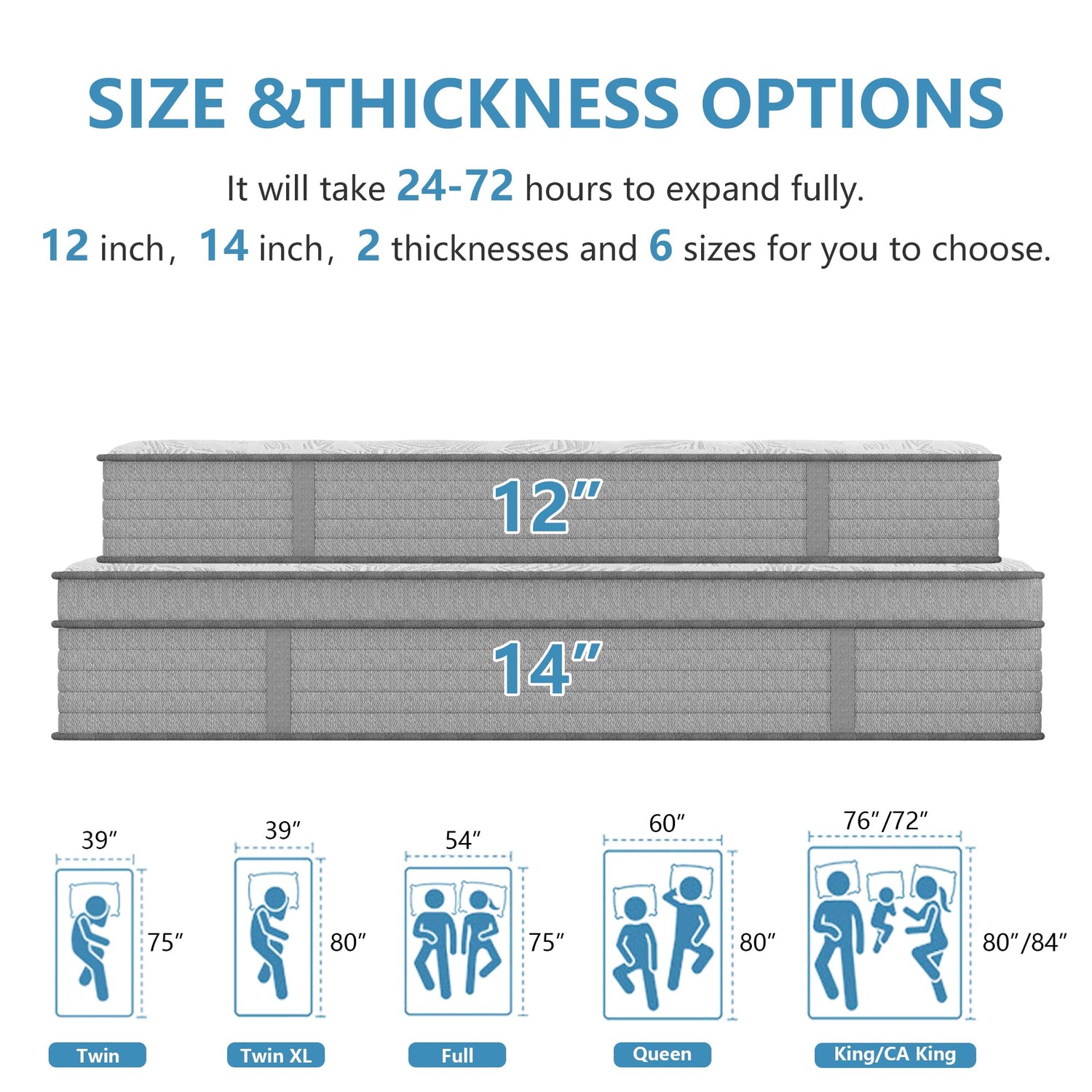 - 【Mattress in a Box that Easily Ship】colchones twin measures 75 "L x 39 "W x 14 "H, The twin memory foam mattress is thoughtfully designed with side handles for easy moving or installation, and you don't need to buy an extra mattress bag. We effectively compress the mattress in the box for easy delivery to your door. Simply open the box, cut the protective film and unfold the mattress before use. Please wait 24-72 hours until fully expanded. This twin mattress firm fits most bed frames.