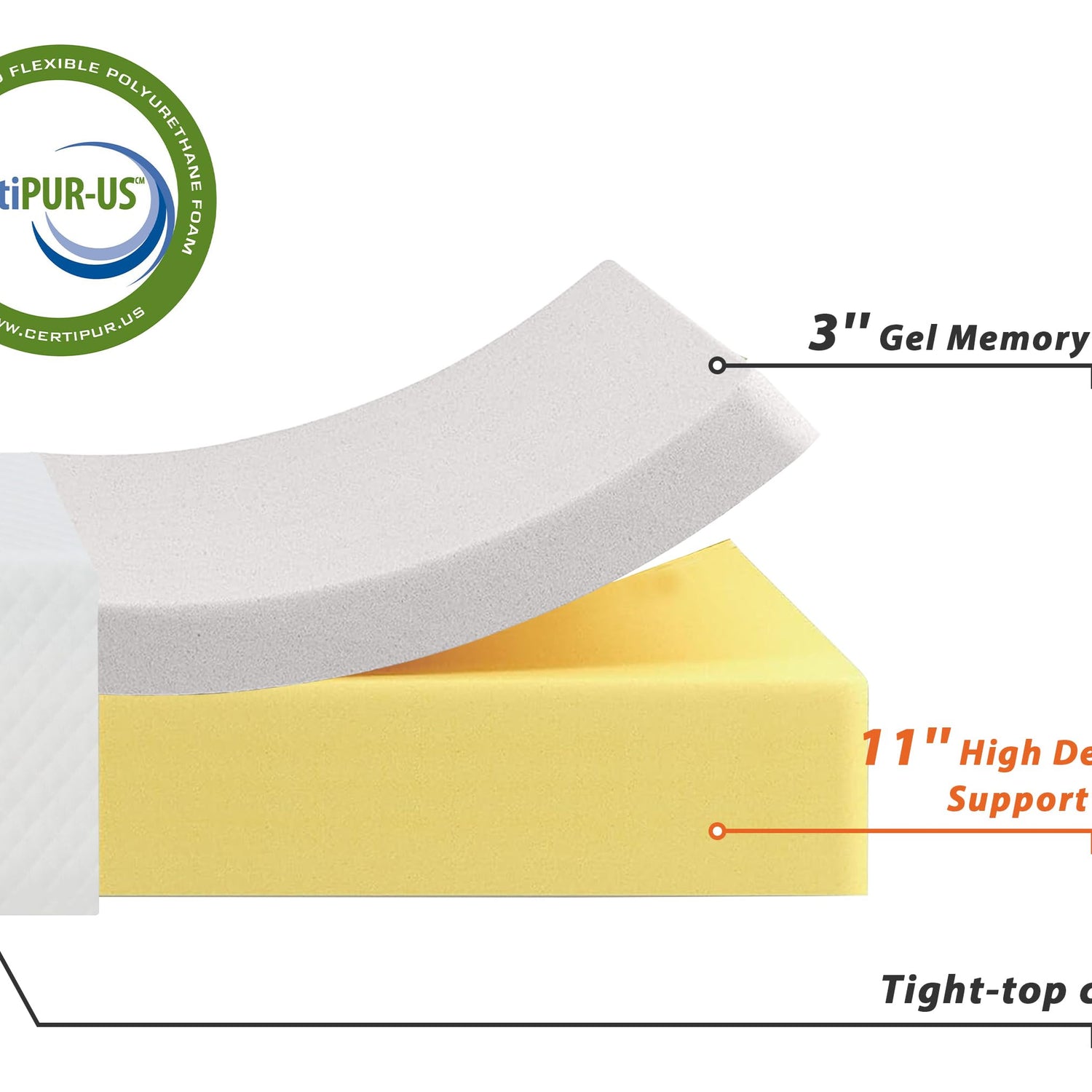 - 🛏︎【GEL MEMORY FOAM CONSTRUCTION】 On top is a gel-infused memory foam that keeps you cool. The gel on your twin bed mattress absorbs excess heat while you sleep, allowing you to fall asleep more quickly. The second layer of the twin size mattresses is high-density support foam, which provides support more in line with the body curve, neither too firm nor too soft. The mattress in a box offers complete, luxurious and stress-free support.