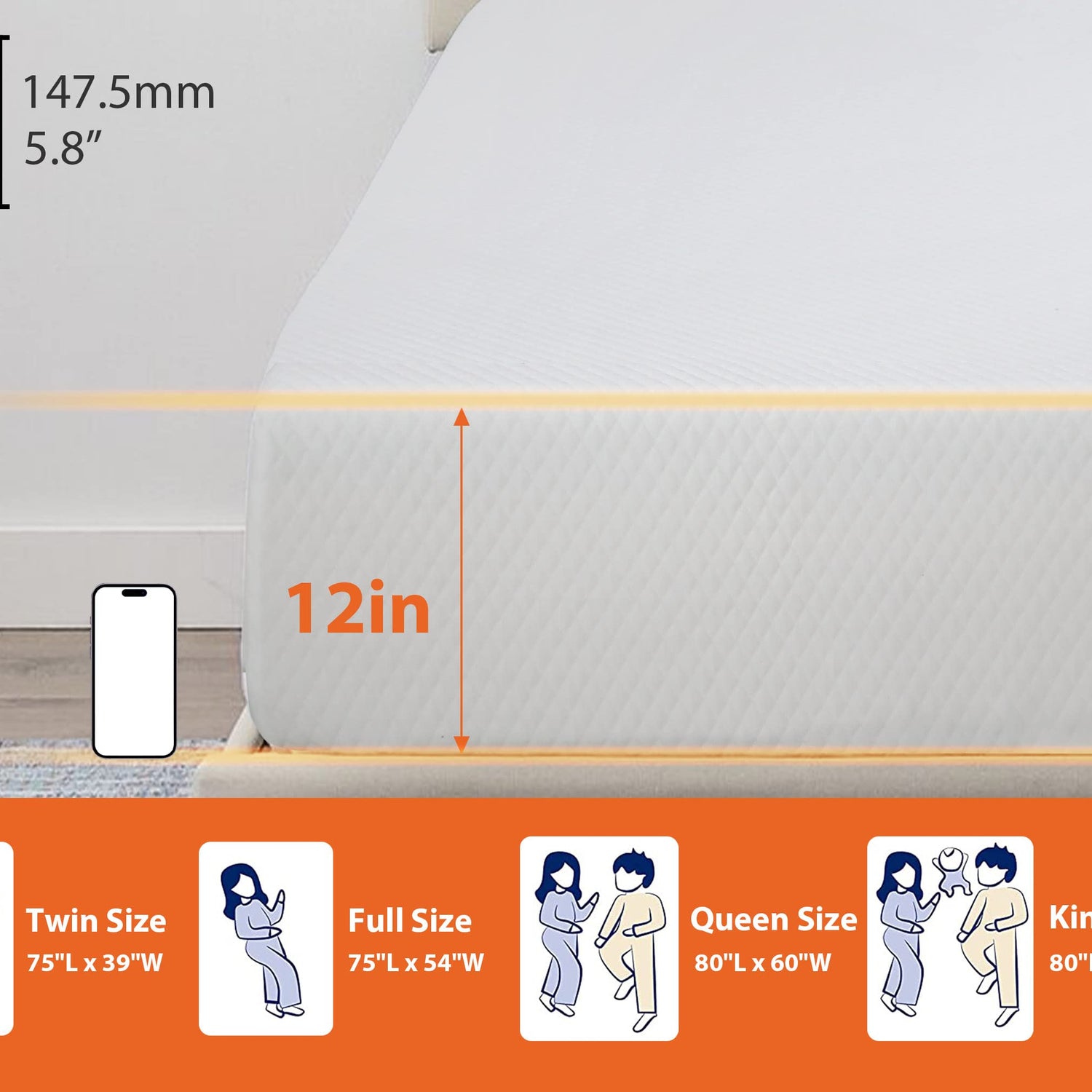 Twin Mattress, 5/6/8/10/12 Inch Medium Firm Mattress Memory Foam Mattress for Cool Sleep & Pressure Relief, Certipur-Us Certified Twin Bed Mattress, Twin Size Mattresses Bed in a Box, (Twin, 12 Inch)