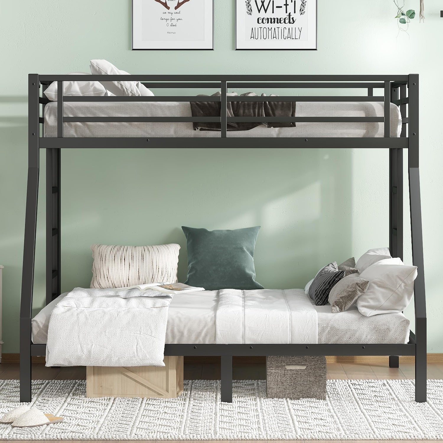 Twin Over Full Bunk Beds for Adults,Heavy Duty Adult Bunk Beds,Metal Bunk Bed Twin Over Full with 2 Ladders for Kids,Teens,Noise-Free,Black