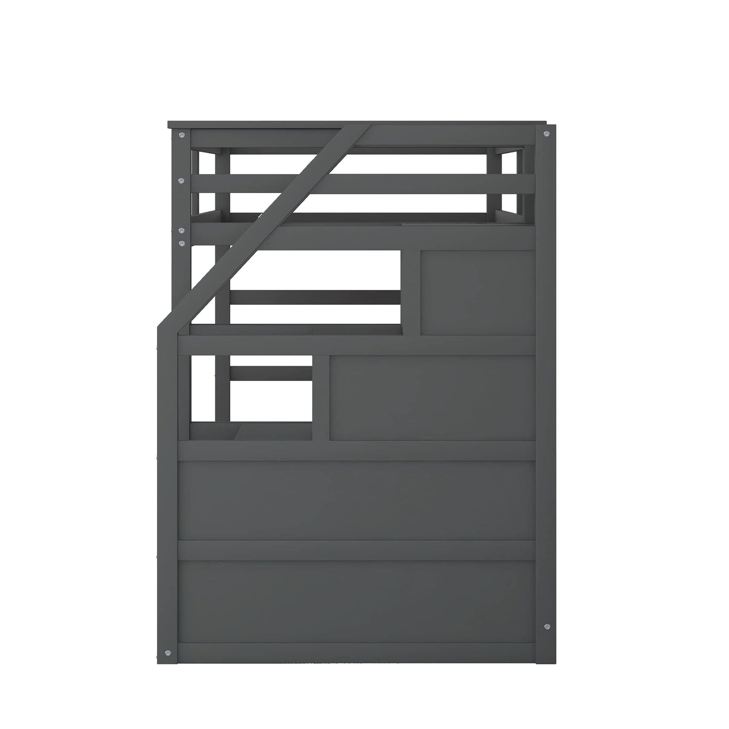 - [Wooden Twin Size Bunk Bed with Stairs] - Our bunk bed with three spacious storage stairs, Three storage stairs are meticulously sized to keep toys, clothes, books, bedding sets and other bedroom necessities clean and tidy.