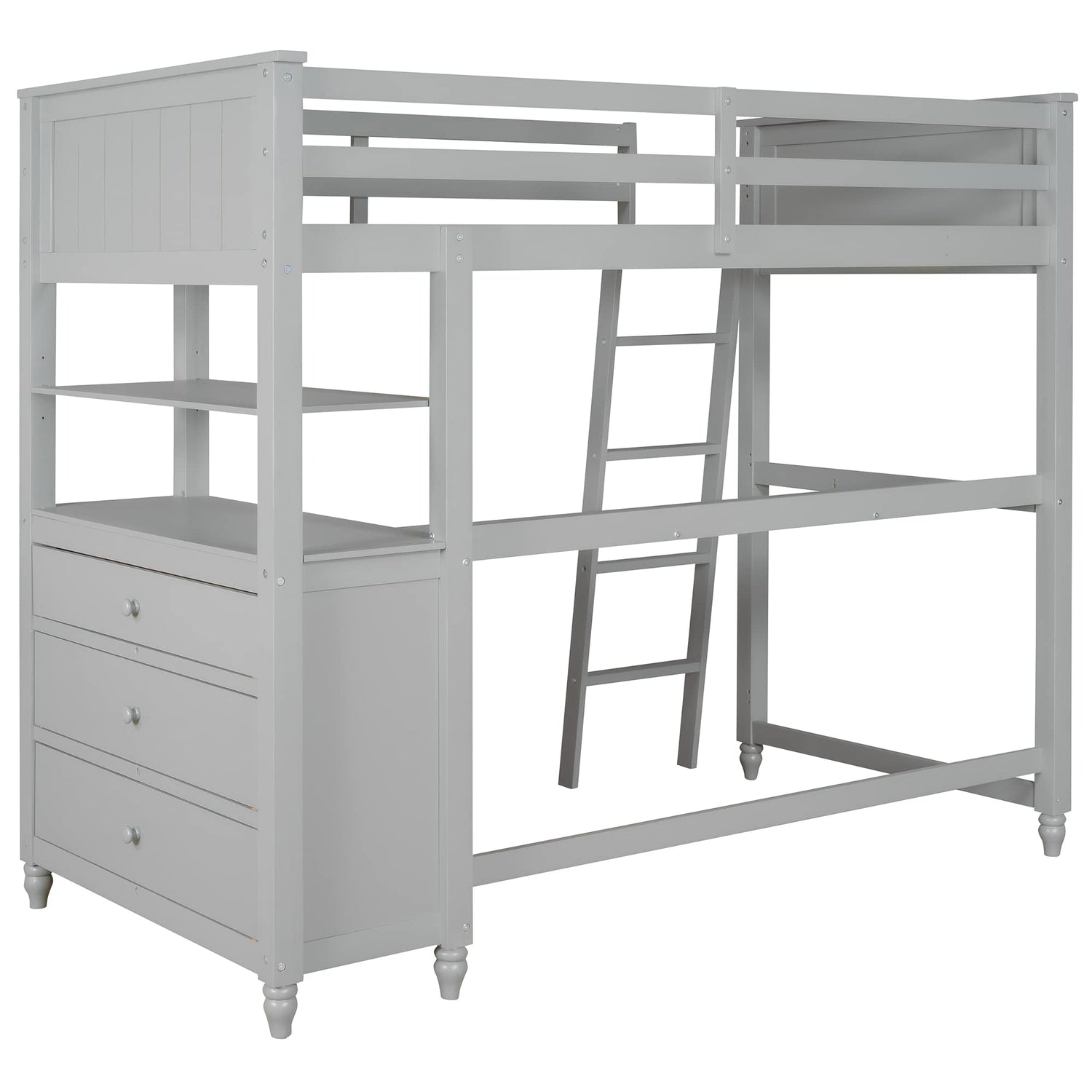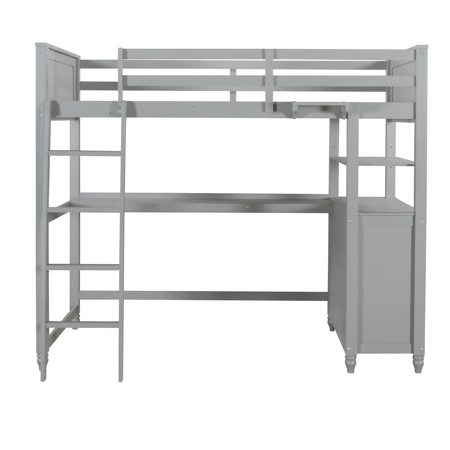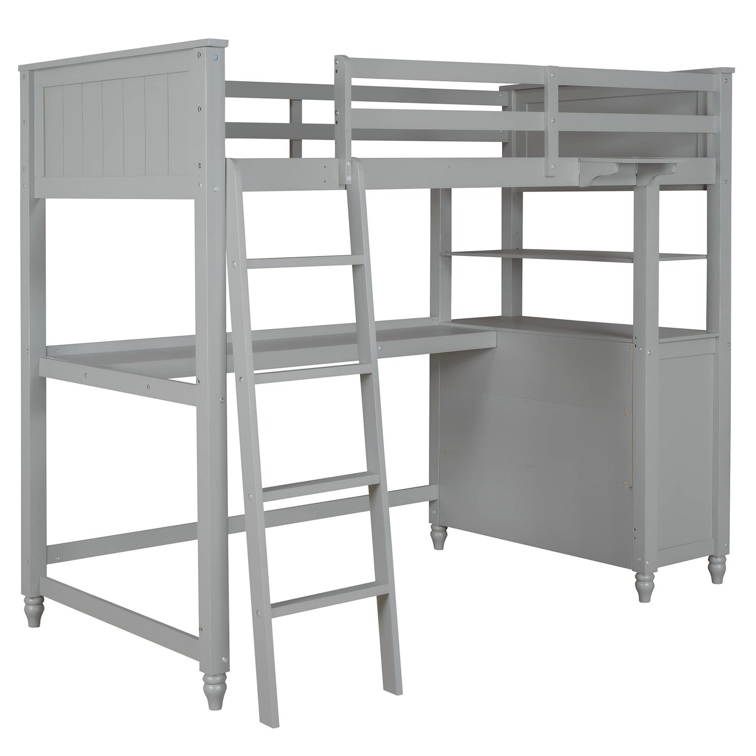 Bellemave Grey Loft Bed with Desk and Storage for Kids and Teens