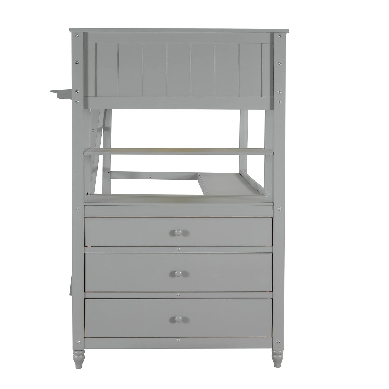 Transform your child's bedroom into a stylish and functional haven with the Bellemave Grey Loft Bed with Desk and Storage. This innovative twin-size loft bed brilliantly merges a comfortable sleeping space with a versatile workstation, making it the ideal solution for kids and teens.