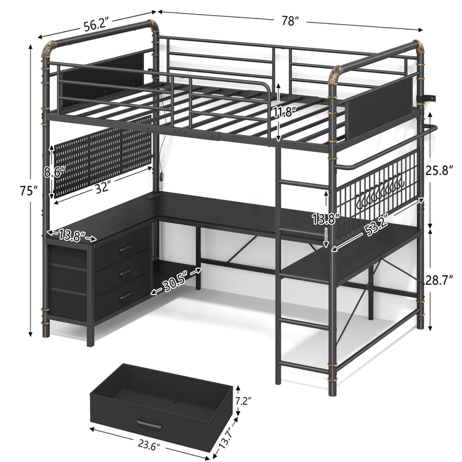 - 【U-Shaped Study Desk】The twin size loft bed features a spacious U-shaped desk, allowing you to divide your space into distinct zones.Loft bed offers ample storage for daily office supplies, makeup essentials, and gaming equipment (Dimensions: 78 x 41.3inches ).
