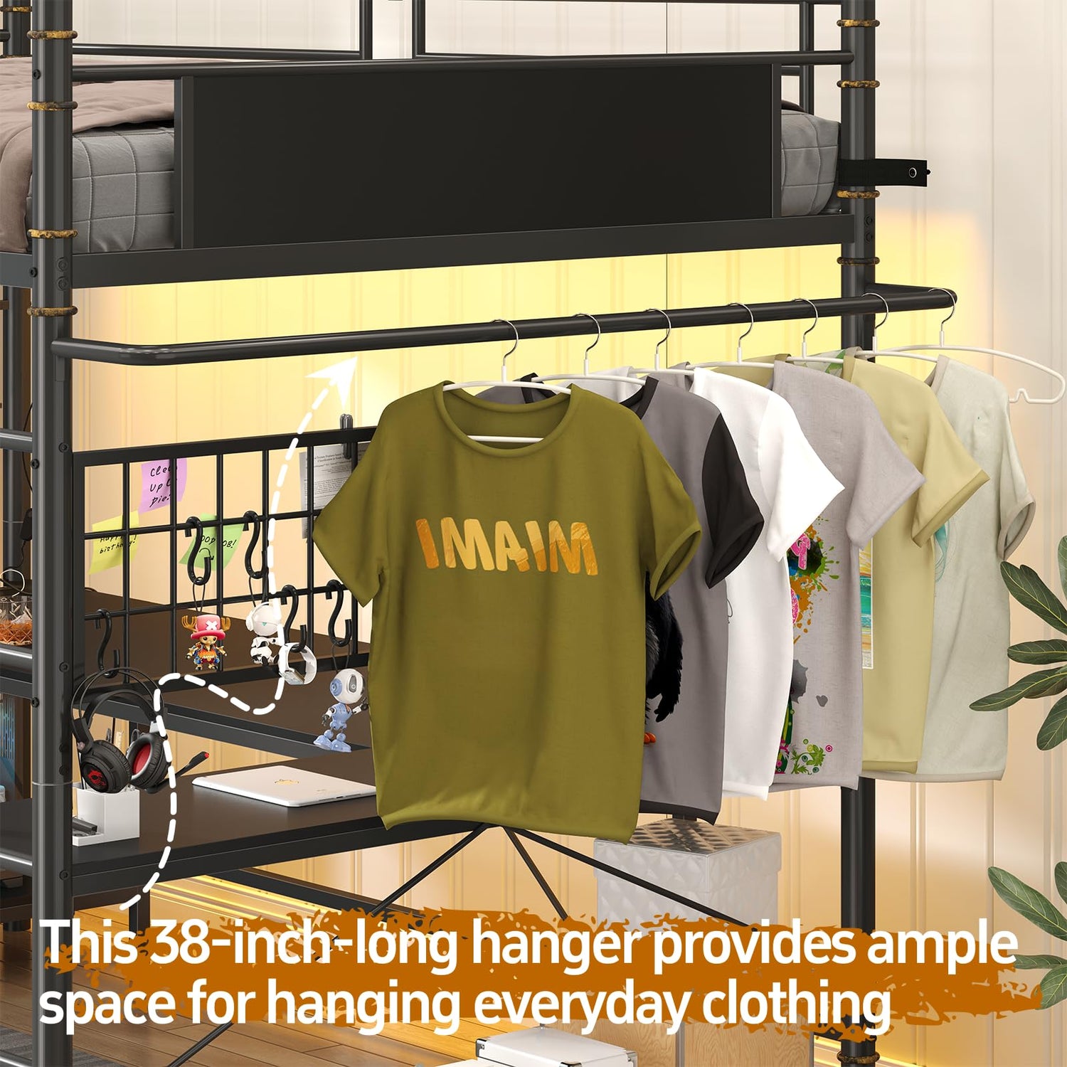- 【RGB Light-Up Loft Bed】 This RGB light-up bed offers over 60,000 colors and multiple lighting modes, complete with music synchronization. Easily switch cabinet colors via a mobile app. The color-changing rhythm not only syncs perfectly with music but also lets you create your ideal ambiance for an ultimate visual experience. Whether you need warm reading light, dazzling party lights, or a study nightlight for children, this LED bed frame meets every need, making it the perfect choice for family entertainment.
