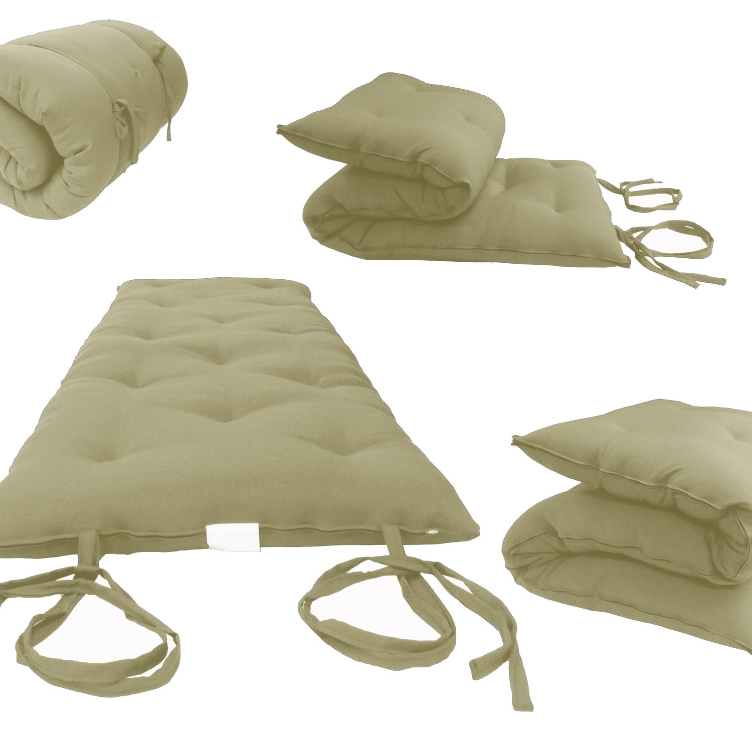 Details: This traditional Japanese futon mattress is made of cotton batting and able to be rolled up to keep in closet and rolled out right on the floor to sleep on. This makes for an efficient use of living space and storage, easily to move. This 3" thickness futon mat is an ideal to sleep on floor. Moreover, it can be used in multi purposes such as for picnics, visitors, children playing games, taking a rest, massage, yoga, exercise .... You can use this Japanese futon mattress in any efficient places, such as guest room, living room, exercise room, patio, studio, dormitory, mobile house, massage studios and also bring it with you in your car when going to anywhere.