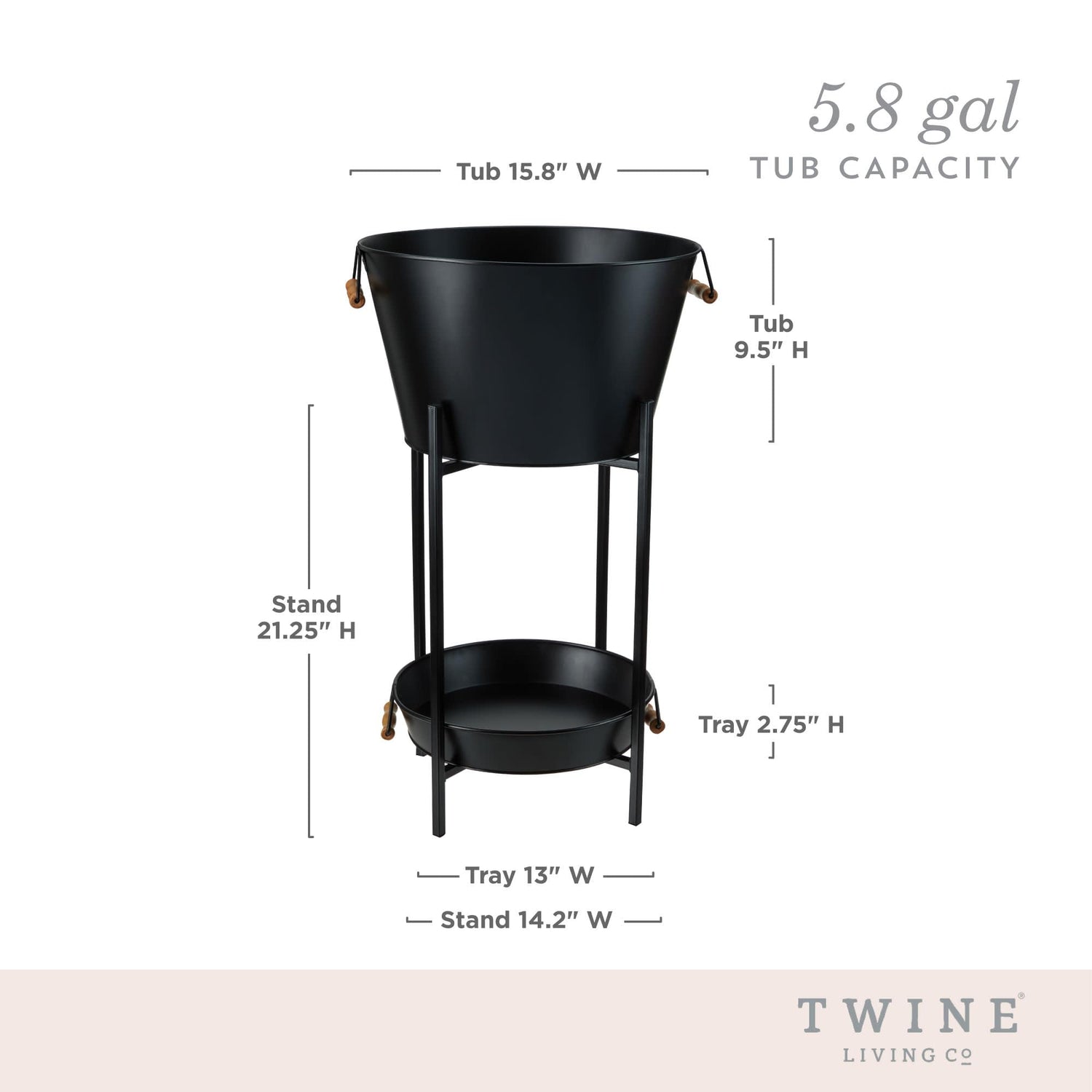 - BLACK METAL TUB WITH STAND - Serve drinks in style with this sleek ice bucket with stand and a tray. The all black finish looks fresh and modern, while the acacia wood handles add warmth and make the tray and tub easy to transport.