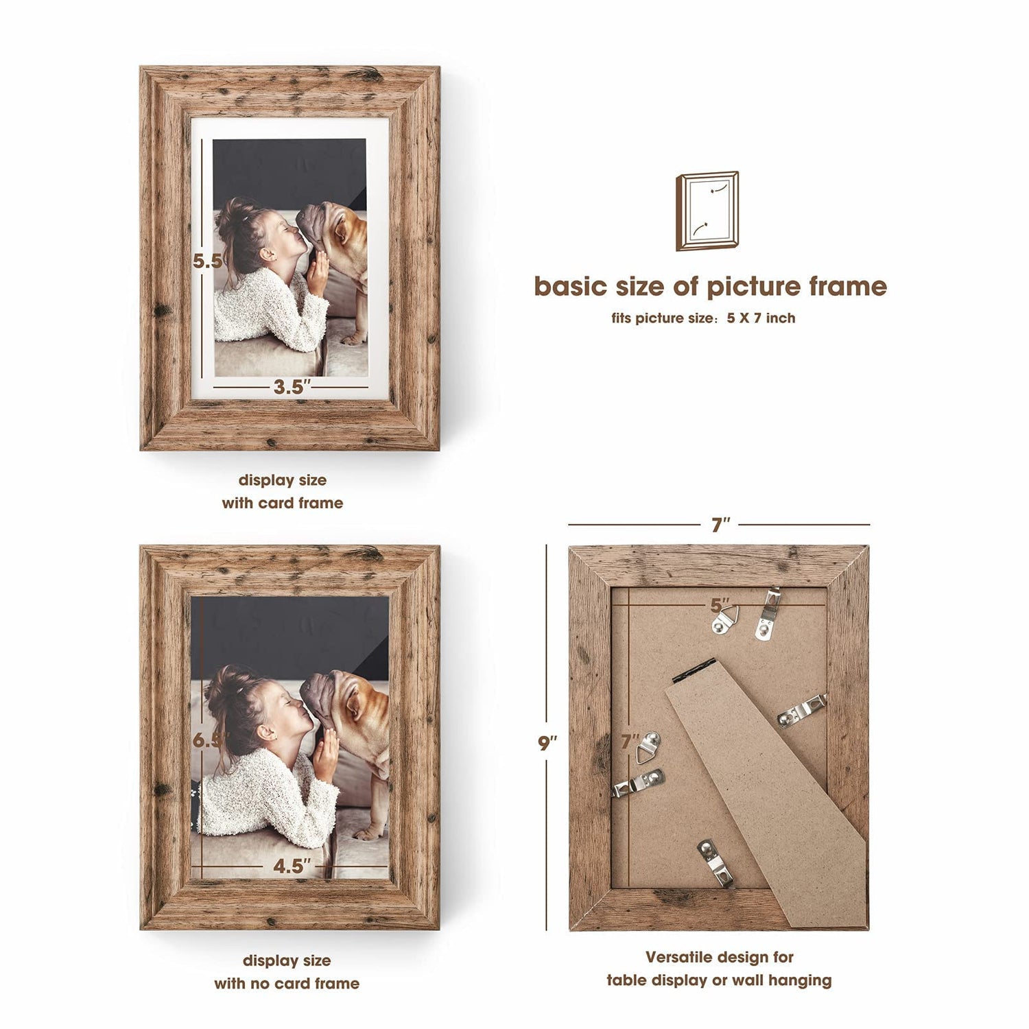 - Heartfelt Gift Option - These stylish rustic picture frames 5x7, with stunning walnut grain and classical rustic farmhouse style, make the perfect gift for family and friends on any special occasion. Whether it's Thanksgiving Day, Christmas, Father's Day, Mother's Day, Anniversary, Wedding, Birthday, Housewarming, Graduation, Valentine's Day decor gift, or any other special event. Complement any featured document, print, poster, or photograph, and add a touch of rustic charm to their home décor.