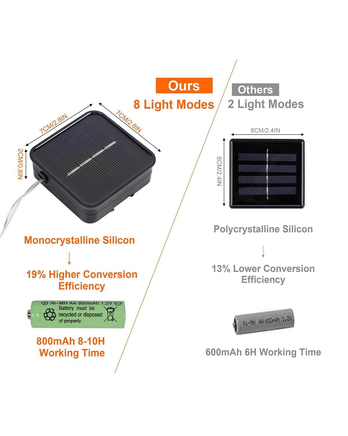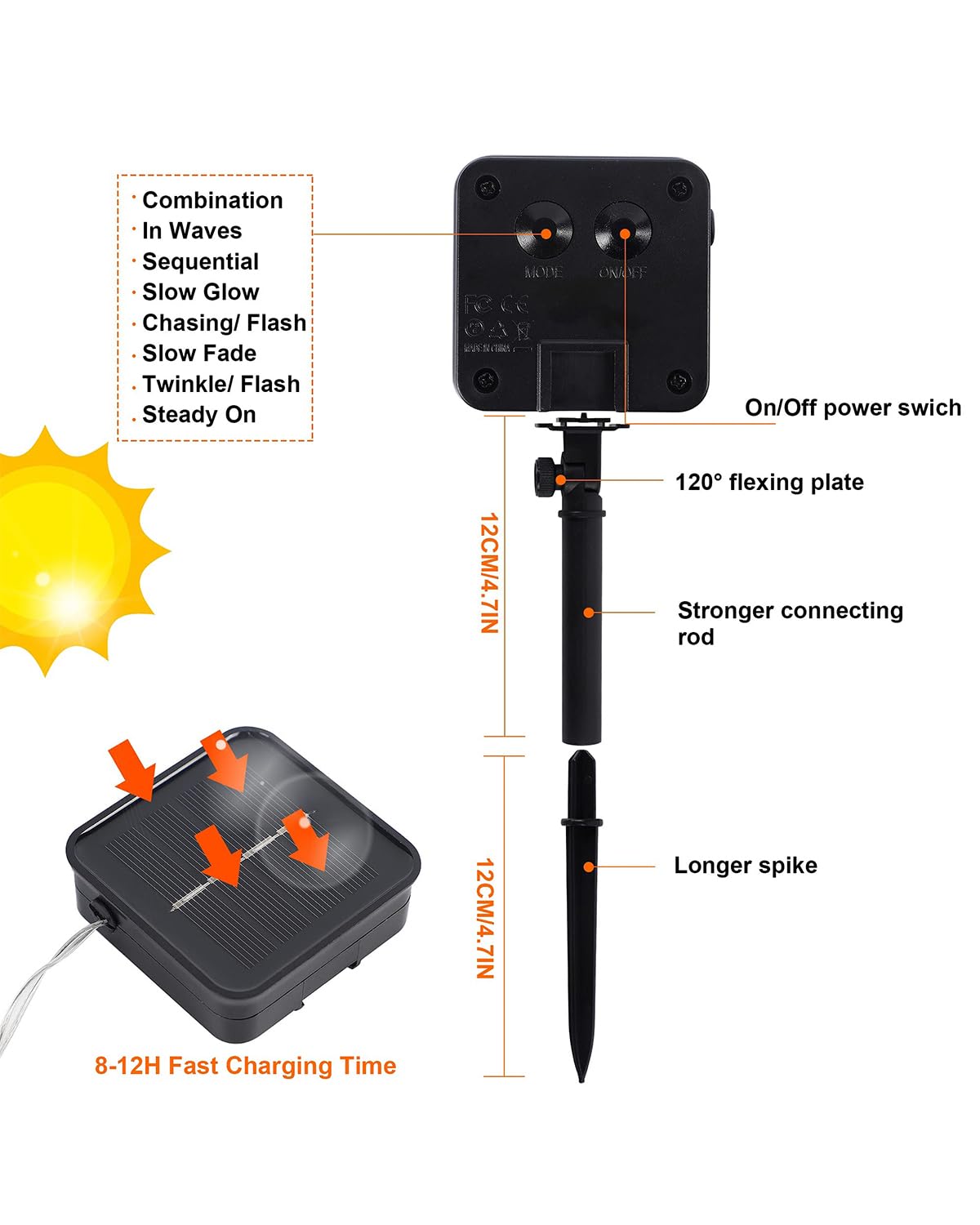 - 8 Lighting Modes with Memory Function: Our solar fairy lights for outside waterproof have 8 lighting modes for you to choose: combination, in waves, sequential, slo glo, chasing/flash, slow fade, twinkle/flash, and steady on. Comes with memory function, remember last setting automatically after turn off the power, no need to reset again.