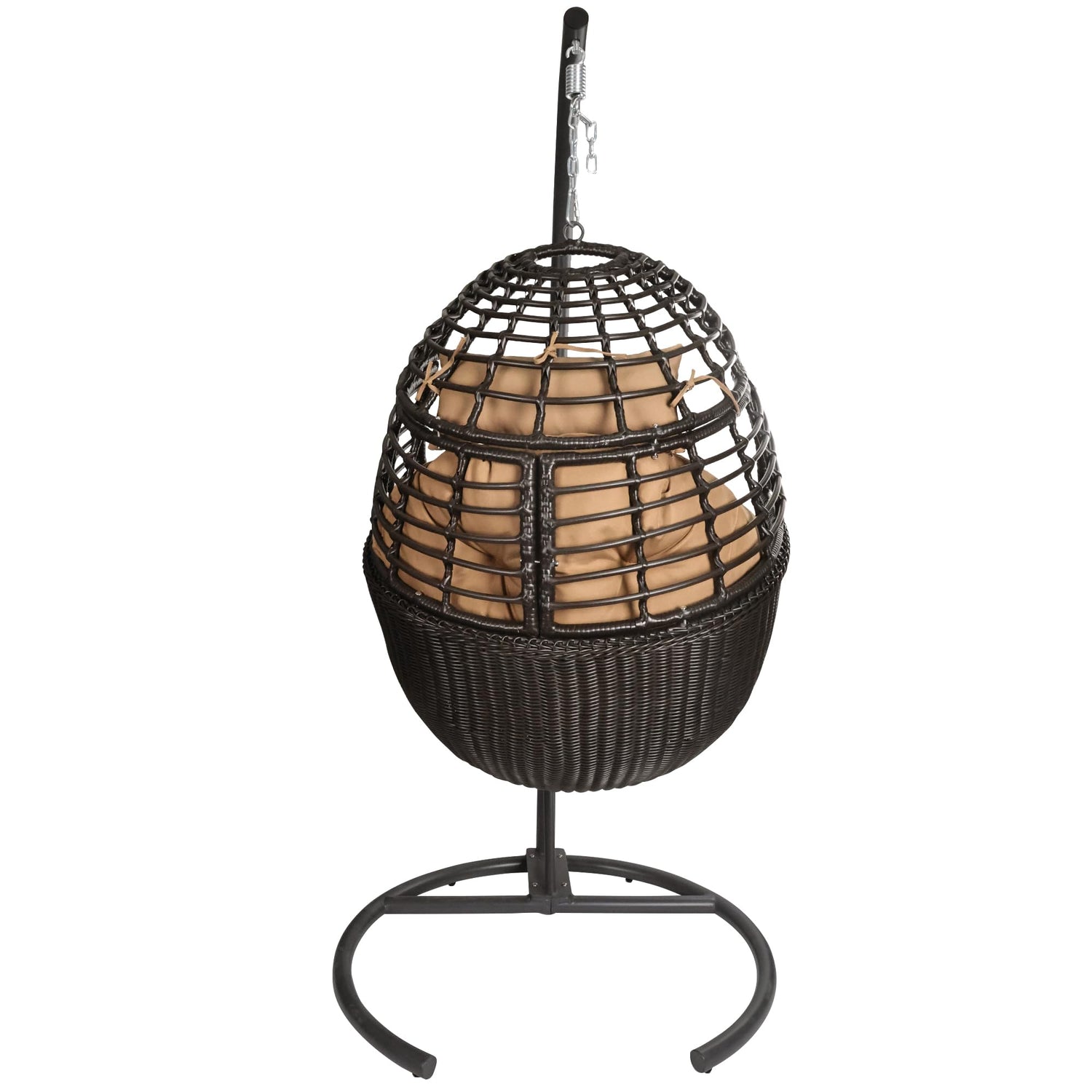 TWT Hanging Egg Chair with Stand, 330lbs Capacity Patio Wicker Egg Swing Chair with UV Resistant Cushion for Bedroom Garden Indoor Outdoor (Dark Brown)