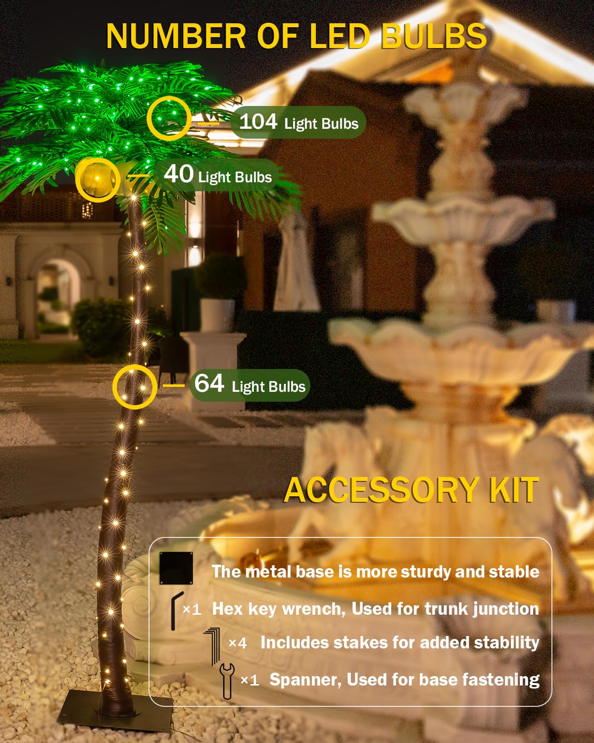 - More Than Just a Decoration: Our lighted palm trees are designed to impress. The realistic glowing coconuts and durable PP material leaves are a testament to our commitment to quality. They are built to withstand sun and rain, ensuring your tropical paradise stays beautiful all year round.